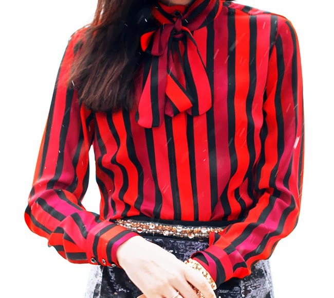 Сразу кинулось в глаза, что верх нужно заправлять, иначе торс кажется очень длинным, непропорционально. Обтягона тоже не надо и думается мне выреза горловины волнами тоже не надо Блузка идет в голову с коротким рукавом