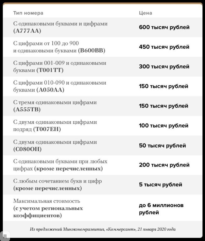:-))) т.е., напр., о010оо стоит дешевле, чем, напр., о835оо :-)))) Хотя, кто сказал, что логика у Минэконома есть? Нет ее. Вот еще одно подтверждение.