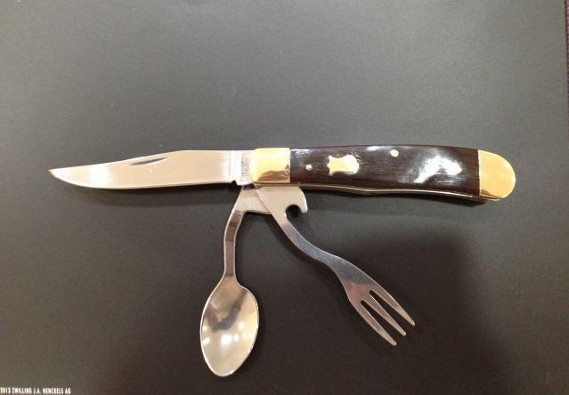 Комплектация: Нож, вилка,ложка,открывалка для бутылок.