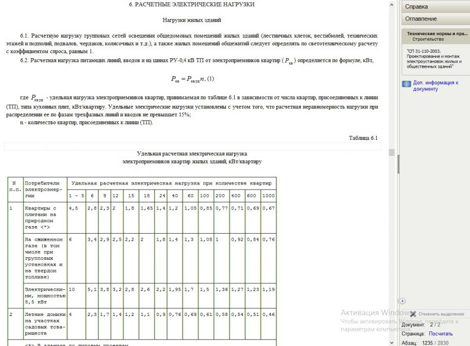 введение в заблуждение. есть норматив только на потребляемую мощность. что-то около 4 кВт одновременно... ---------- Сообщение добавлено 30.01.2014 14:43 ---------- не. вот так вот
