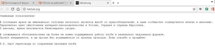 rip hdclub Уважаемые пользователи! В последнее время мы еженедельно получаем несколько десятков жалоб от правообладателей, а наше сообщество подвергается атакам и шпионажу. Параллельно идет ужесточение интернет-законодательства в России, Украине и странах Евросоюза. И наконец, время энтузиастов безвозвратно уходит. В сложившихся обстоятельствах мы более не можем поддерживать работу клуба в изначально задуманном формате. Проект закрывается, а мы просим Вас воздержаться от громких проводов. Всем спасибо и прощайте! P.S. Идут переговоры по сохранению наследия клуба