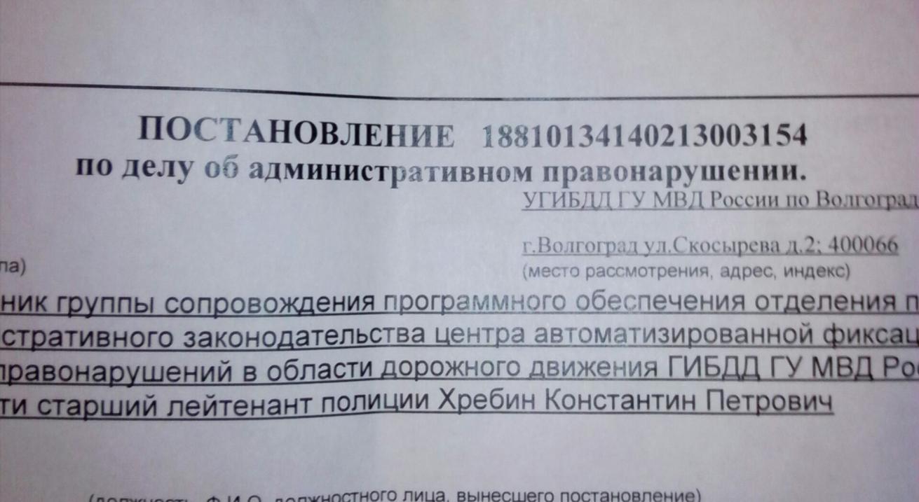 Посмотрите прошлые постановления (если есть) или пусть здесь кто-нибудь посмотрит (у меня нет под рукой, т.к. машина другая), сравните номера, добавьте номер региона 34, как в предыдущих было) и подгоните по кол-ву цифр, если нужно, добавив перед Вашим номером нули.
