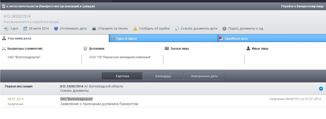 ОАО "Волгоградгоргаз" подало заявление о признании ООО "УК Кировская жилищная компания" банкротом.