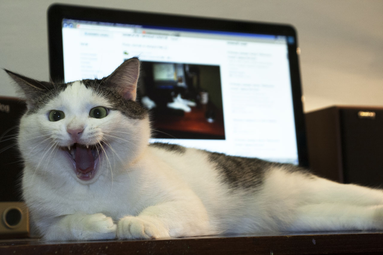 Купил рояль для чувствительных желудков. Надо признать, Иван ест его гораздо лучше. Похоже, ему просто не нравился кэт чау, который мой второй кот, Лев, трескает за обе щеки и поправляется так, что его аппетиты надо сдерживать. А вот и фоторобот подозреваемого: Худобу видно плохо, ракурс неудачный. Ну чего мы хотим с камеры наблюдения, качество, какое есть.