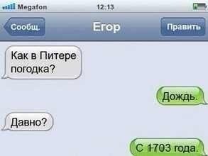 Ясно, значит секс втроем был ---------- Сообщение добавлено 14.03.2014 11:03 ---------- Я и так всё вижу, я же не езжу на машине в магазин и когда гулять иду тоже иду пешком и глазею) Насчет простого отношения к одежде - тут Вы правы, вопрос только в том, кто как это воспринимает. Я отношусь нормально. Ну а в провинции всегда так было - женщины на последние деньги стараются одеться как на ярмарку, чтобы друг другу предъявить свой гардероб на работе))))))) Тут чисто, и в отличие от Волгограда можно ходить в черных замшевых ботинках и не думать о существовании пыли Так что чо её мыть-то Если серьезно, удивлен, что Вам попадаются страшные и неопрятные, но лично у меня стойкое мнение сформировалось, что в Питере намного больший процент красивых женщин. Опять же, всё дело вкуса, это мое впечатление такое. ---------- Сообщение добавлено 14.03.2014 11:06 ---------- Не барское это дело - самому обувь чистить! А мальчиков, сидящих на тротуаре и чистящих обувь, отменили после революции. Так что тока и остается, что ходить в нечищенной обуви, куда деваться... ---------- Сообщение добавлено 14.03.2014 11:08 ---------- kort, да не в одежде дело, я не на ней акцент делал! Дело во взгляде!