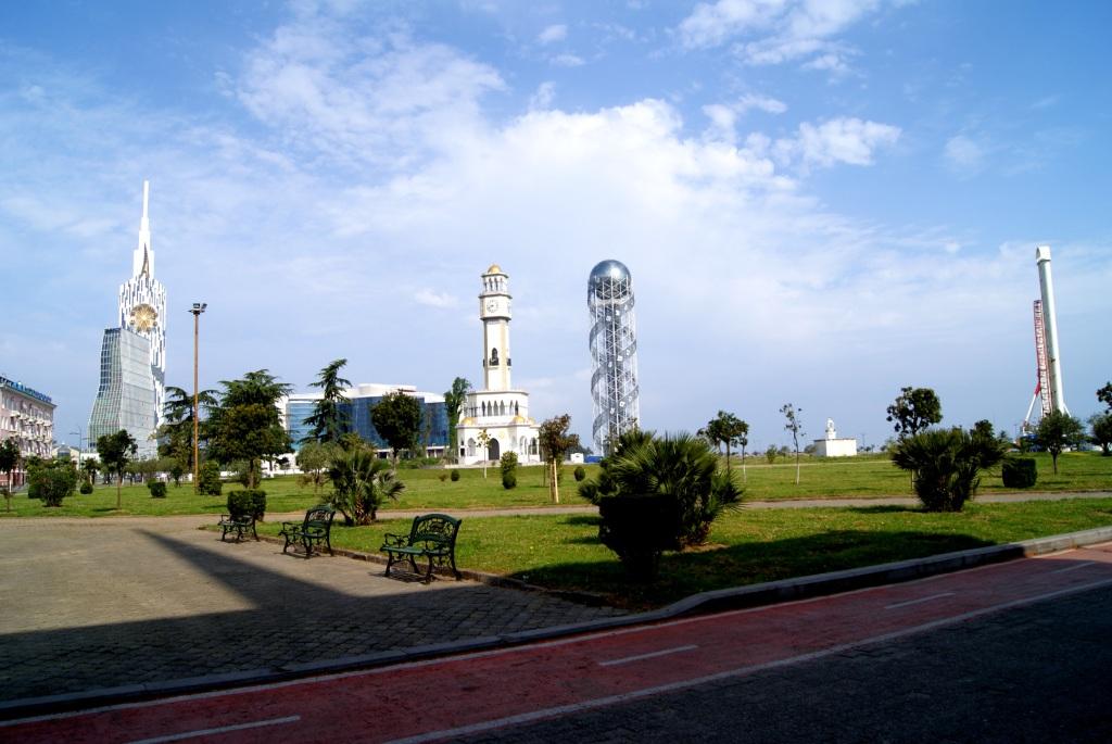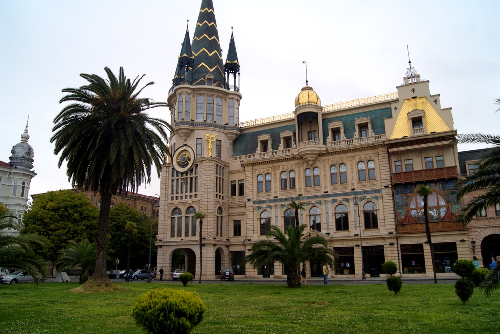 Да..оч.интересно..этажей несколько-не считал-зашли на первый попили кофе. там все наоборот внутри ..шахматный пол-потолок сверху вниз висит ёлка.. и т.д-внутри еще круче ..Хм..не уверен..не знаю .местные говорят что наоборот. Бывший Абашидзе( в Москву сбежал кажется) пытался завести там бандитские порядки - типа все въезжавшие должны платить и т.д.. Plus Это все мелочи по сравнению с парком через весь город по набережной ! и по ней же от начала города и до самого конца велосипедной дорожкой со спец.покрытием !С беспл.зоопарком и много с чем еще !
