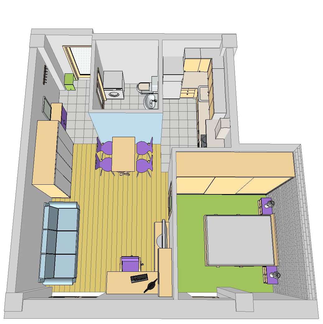Также есть проект перепланировки где без окна только туалет, получается современная европейская квартира-студия.