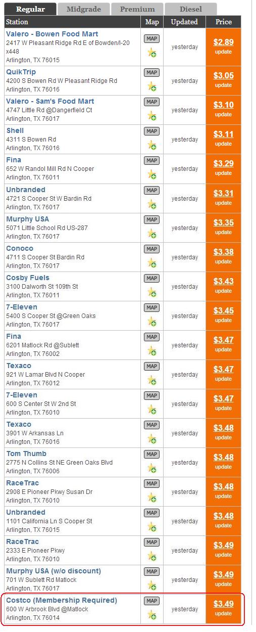 Незванная, применительно к ценам в Чикаго - очень неправда, скажем так. Причём в соседнем округе бенз ещё дешевле. Причём тут министерство энергетики США, когда ссылка на РБК? ---------- Сообщение добавлено 29.04.2014 21:57 ---------- В Costco же такая система - показывай карту и заправляйся со скидкой на их же заправке.