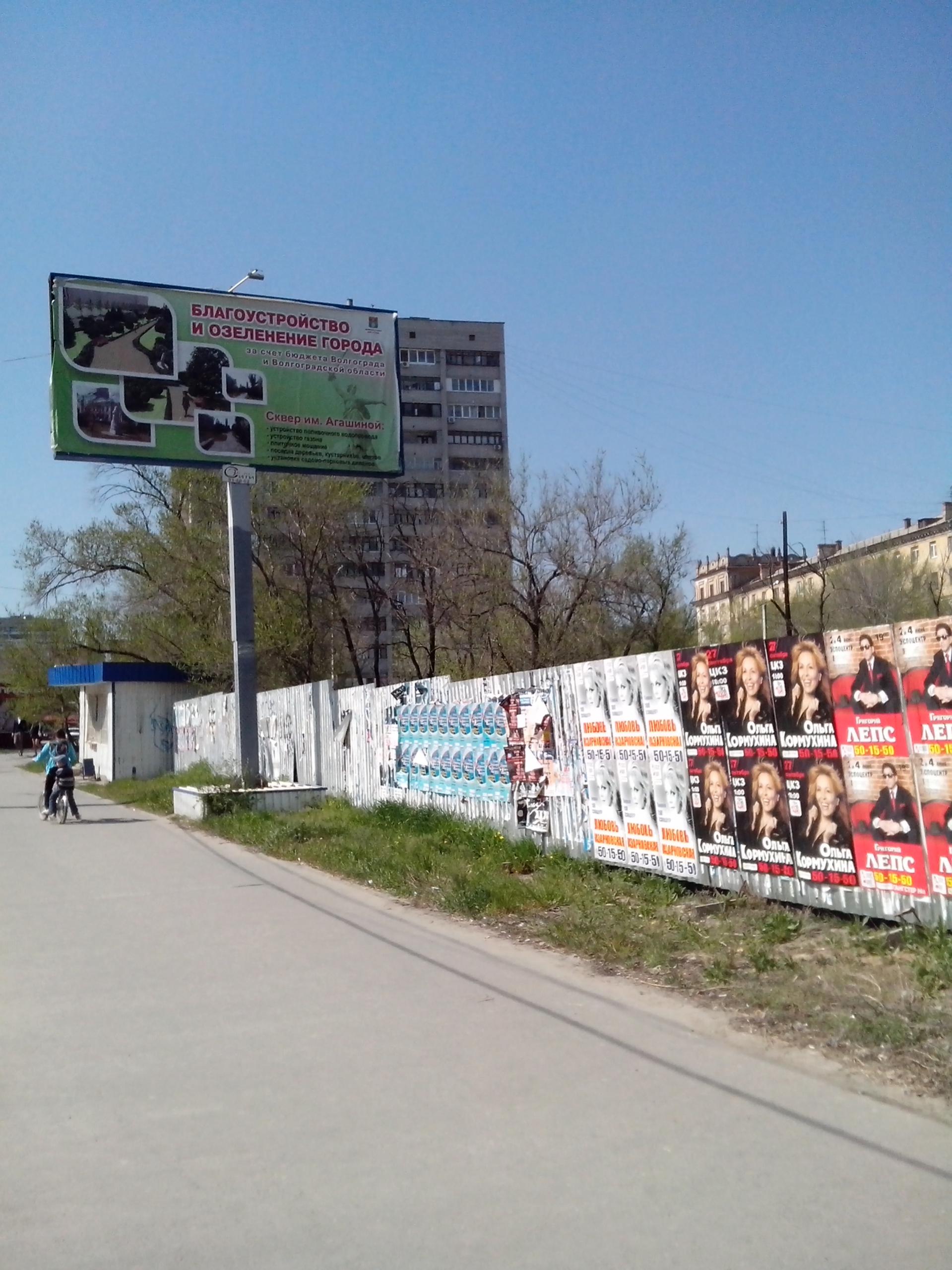 вам бы еще немного чувства юмора в нашем городе! денег на ремонт подвески! и кислородный баллон! ЗЫ наводка тем, кто родился серьезным: На плакате зеленого цвета "Благоустройство и озеленение города. Сквер им Агашиной" Внизу зеленым "МАН". Место знаковое.