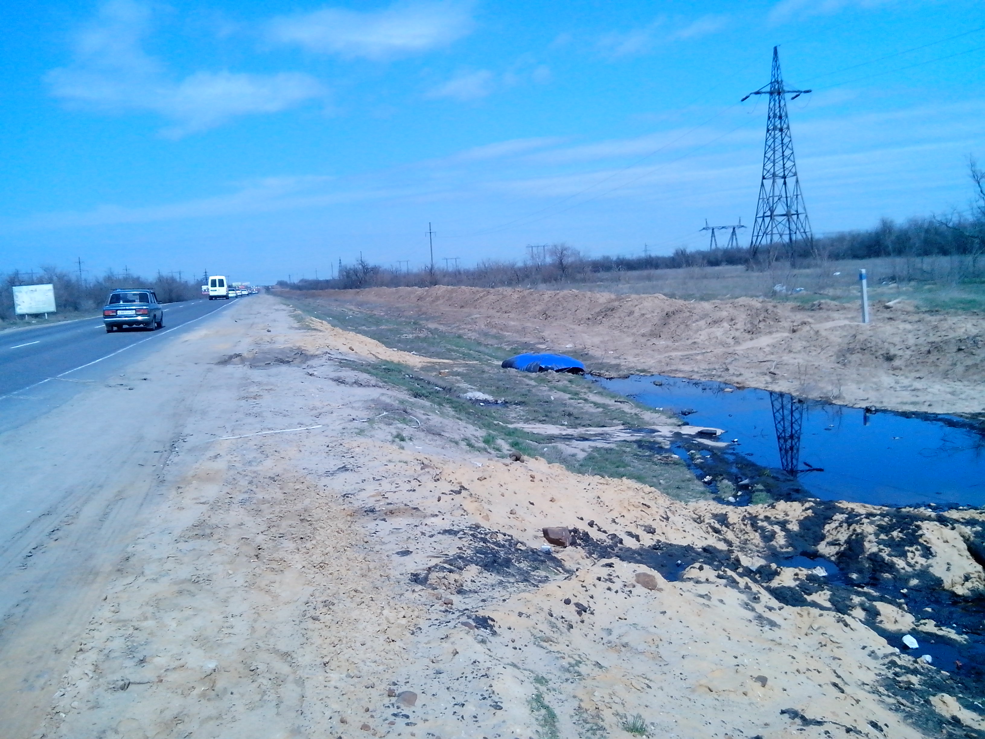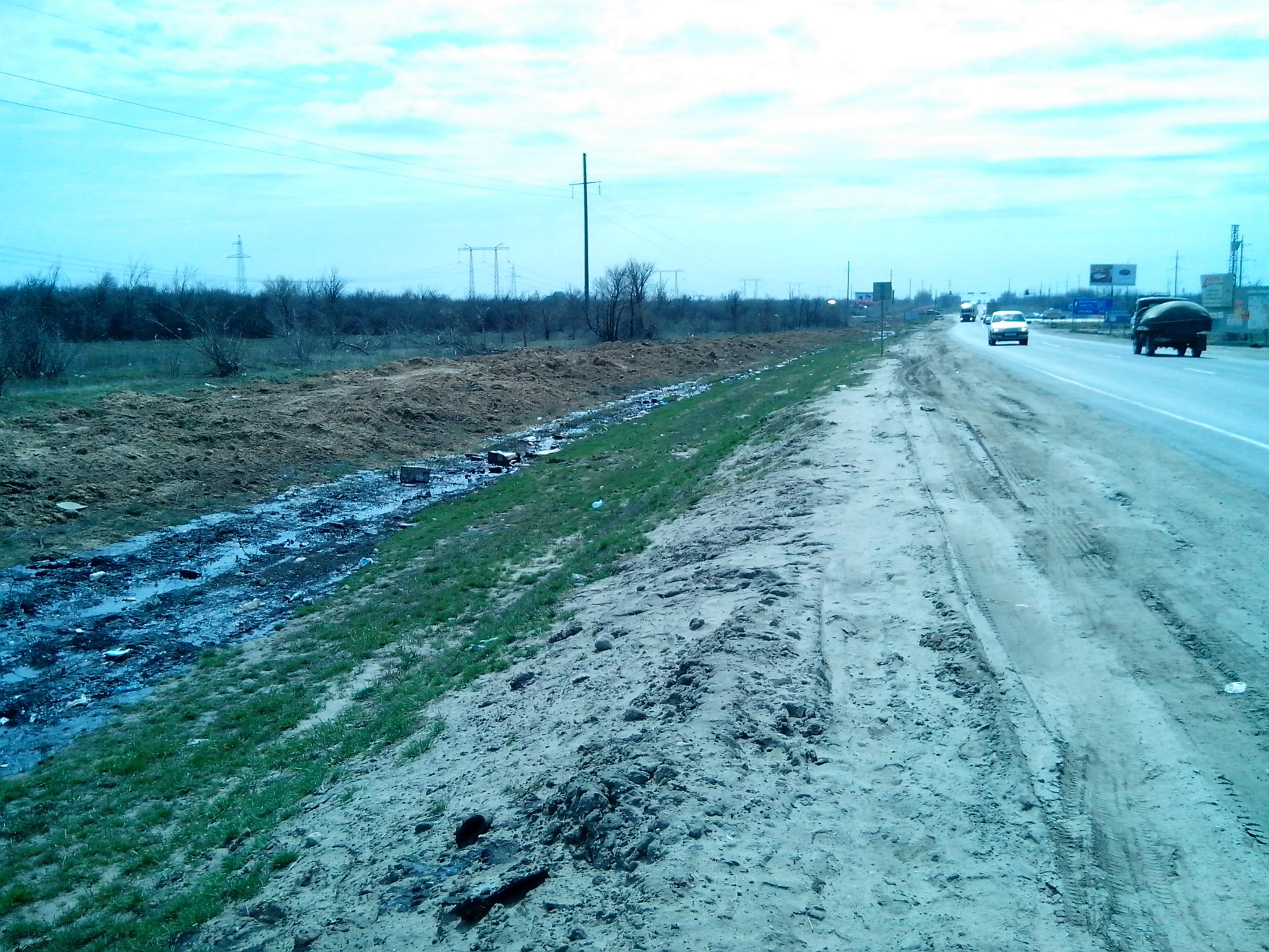 При повороте с 3-й продольной на саратовскую трассу (в сторону Саратова) слева просто охеренная лужа какого-то дерьма, похожего на битум. Наблюдал её ещё месяц назад. Сегодня ехал, остановился посмотреть. Солнышко пригрело и смрад стоял крайне неприятный. Судя по всему, перевернулась автоцистерна с этой хренью. В луже валялись торцевые части цистерны. Мне вот кажется, что такое ДТП не прошло бы незамеченным мимо ДПСников и виновник был бы зафиксирован. Так какого ж хрена не убрано до сих пор? Фото с телефона сейчас попробую приложить.