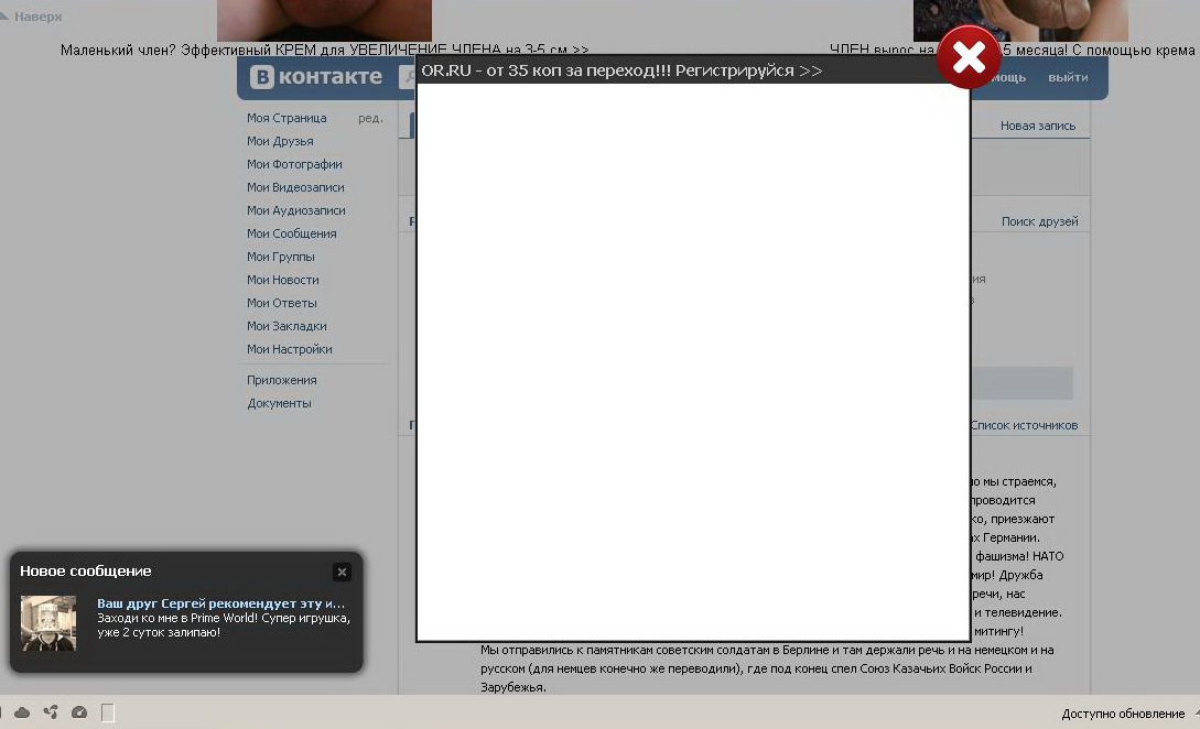 Перестановка ОС не помогла. Банеры вылезают даже втута, на волгофоруме, слева внизу окошко - всплывающее сообщение вконтакта. Расширений нет, процессов левых нет.