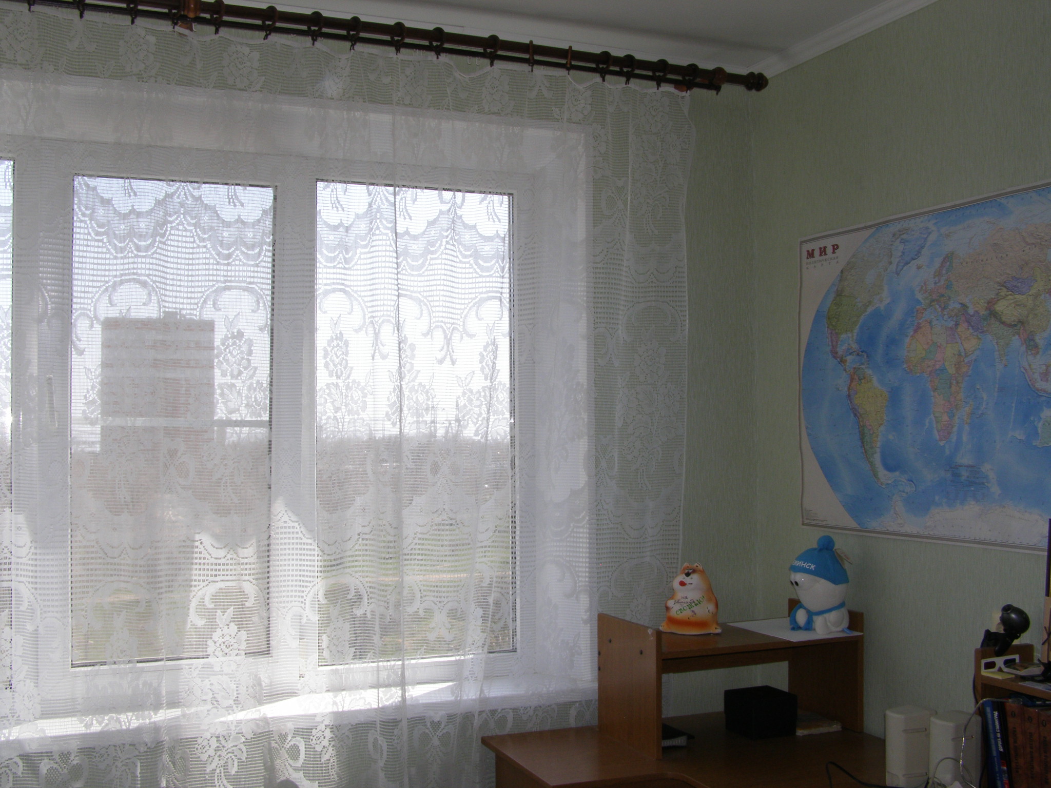 Добавлю фото. Корридор: Тумбочка и "антресоль" могут остаться по желанию новых владельцев. Кухня: Уголок и "гарнитур" - также могут быть оставлены. Слева от плиты - стоял холодильник когда-то. Слева от мойки - посудомоечная машина.Оба агрегата "уехали" на ПМЖ в другое место. Как видно - тут потребуется косметика = сосед с 7-го(! квартира на 5-ом) притопил, пока нас не было. Но, видел варианты затопления намного хуже =) Туалет/ванная: Спальня + балкон: Большая комната: Сплит-система само собой остается, шкаф - так же может остаться, т.к. делался под размеры данной комнаты = смысла нет его куда-то перевозить. Желающим могу отдать бонусом к квартире (стоит за домом - вид из окна):