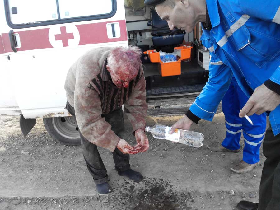 Я остановился. У мужчины были глубокие резаные раны лица, волосяной части головы, кистей рук.