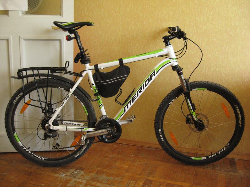 Лот №1 Merida Matts 10V (серебристый) Размер рамы 18". Пробег 3 сезона, не больше 1500 км. Короткие поездки по городу и за Волгу. Всё родное, ничего не менялось. Всё работает. Смазывался и обслуживался вовремя. В комплекте заднее крыло и крепкий, лёгкий алюминиевый багажник. Стоит задний фонарь. Есть крепление на руле под фонарик. В шинах герметик + запасная камера. Креплений для бутылки. Для начинающих отличный вариант. Цена 8 950 рублей. Лот №2 Merida Matts 40D (белый) Размер рамы 20". Дисковые гидравлические тормоза. Пробег 1 сезон ~ 500 км. Всё родное, ничего не менялось. Все переключатели работают. Смазывался и обслуживался вовремя. В комплекте заднее крыло и крепкий, лёгкий алюминиевый багажник. Сумка на раме. В сумке ремкоплект для шин и набор ключей. Беспроводной велокомп. Стоит задний фонарь. Крепление для бутылки. В шинах герметик. Цена 16 950 рублей. Лот номер 3 велорюкзак-штаны Мираж 80. Природы на велосипеде так и не увидел. Пару раз использовал его для поездок в поезде. Состояние отличное. Цена 2000 рублей. Если покупать комплектом (в любых вариациях), будет существенная скидка. Если покупаете оба и в течении недели скидка 2 000 рублей за комплект.