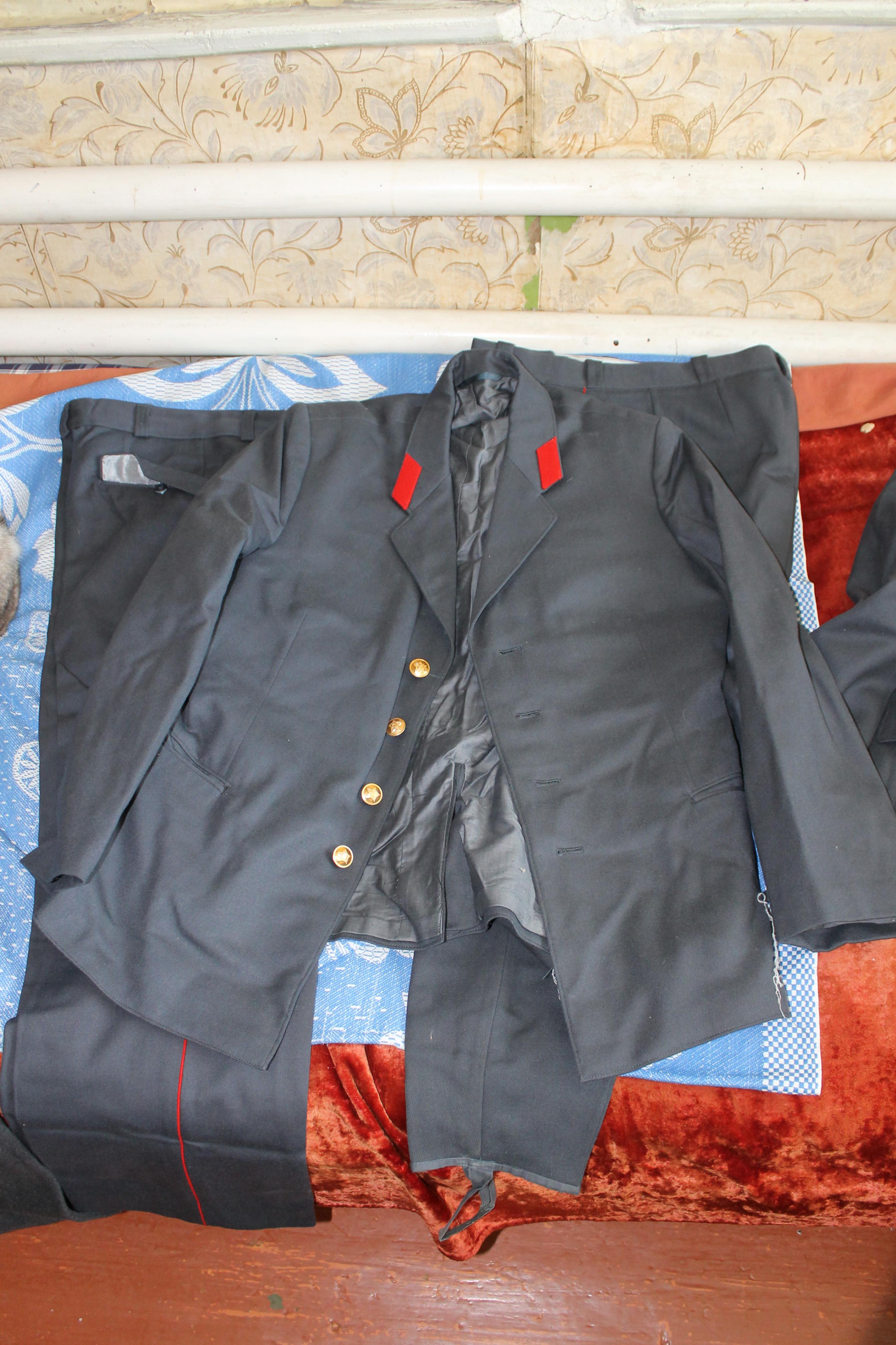 Может пригодится кому-нибудь, просто так выкидывать жалко. Некоторые вещи абсолютно новые, другие - мало использовались, но поскольку продолжительное время хранилось в сундуке, то как следует пропитались махоркой. Я не виноват, это все бабушки Военная форма. Размер 48-3: Китель, брюки и ремень офицерский, китель, рубашка. Милицейская форма. Размер 50-3С. Абсолютно новая: Лютый эксклюзив - голифе!!! простые брюки, китель и шинель. В довесок отдам россыпь звездочек и гербов СССР (которые на петлицы крепились). Забрать можно в Ворошиловском. По договоренности могу подвезти. Жду предложений. Был еще дедовский кожаный плащ с кобурой скрытого ношения, но состояние просто абзац, пришлось выкинуть.