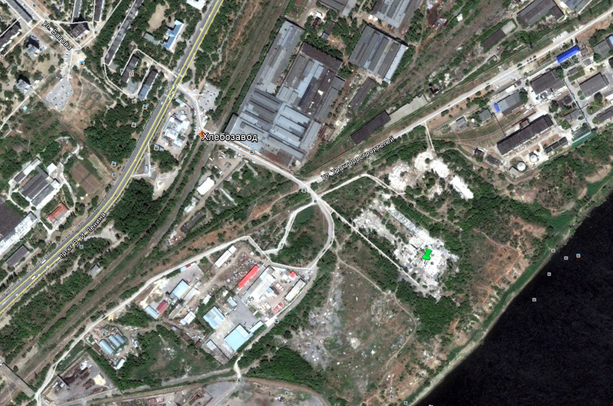 По планете Земля: 48°47'20.67"N, 44°36'18.26"E В самом начале тракторного завода. Обозначил зелёным значком. Станция СТ "Хлебозавод".