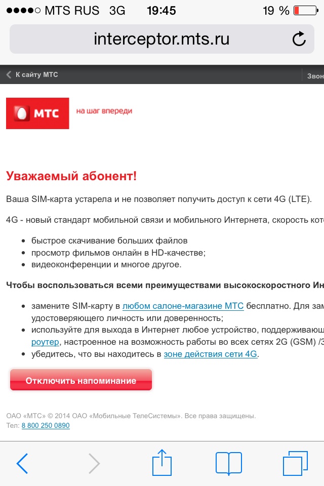 оформить новую симку на себя? ---------- Сообщение добавлено 05.08.2014 23:07 ---------- Еще вариант, зайти через эту симку не через говнобраузер айфона, и там уже отключить это напоминание.