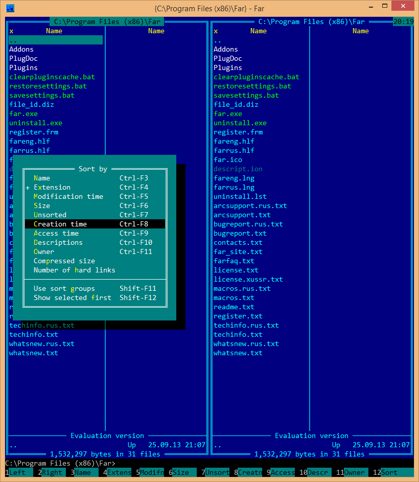 Я пользуюсь бесплатным файловым менеджером FreeCommander (фар всё-таки на любителя ) Так вот в нём можно настроить колонки, установив и "создан" и "изменен", и, в последствии, нажимая на нужную колонку (один клик мышью), можно (опять же) сортировать.