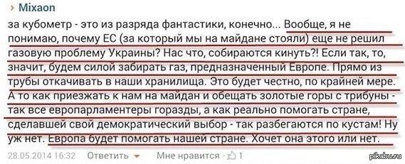 значит я чето пропустил если он с территории украины пишит, значит сидит с инетом, с водой, светом и пока с газом. А может и под пивком рассуждает о несправедливости жизни, ну что же....