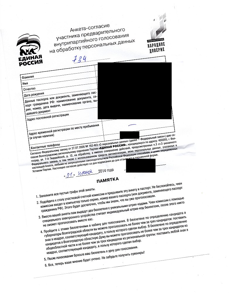 Сходил. Организация дрянь. :frustrate Голосование в школе. Зашли, внутри хор поёт, пирожки продают, короче атмосфера как на обычных выборах. Под голосование отдали небольшой класс. Внутри 2 стола, за каждым по две сотрудницы с бюллетенями, и женщина на входе раздаёт анкеты + отдельно наблюдатели. Сели, заполнили анкеты. К каждому столу очередь человек по 20-30. Постояли минут в 5 очереди. За это время человека 3-4 получили бюллетени, очень долго информацию вносят. Потом у одного стола говорят: идите в другую очередь, там будут заносит данные напрямую в компьютер. А здесь обрабатывать данные больше не будем. Несколько женщин стали возмущаться, типа отстояли в одной очереди, теперь идти в хвост другой? Наблюдатели дружно проголосовали, что надо всем собраться в одну очередь. Мы развернулись и пошли домой. С таким отношением к избирателю там делать нечего. Да, на выходе из школы обратил внимание, что напротив 3 ПАЗика стоят. Уж не карусельщиков ли возят какие-то особо заинтересованные кандидаты? Или совпало так случайно просто. Анкету оставил себе на память.