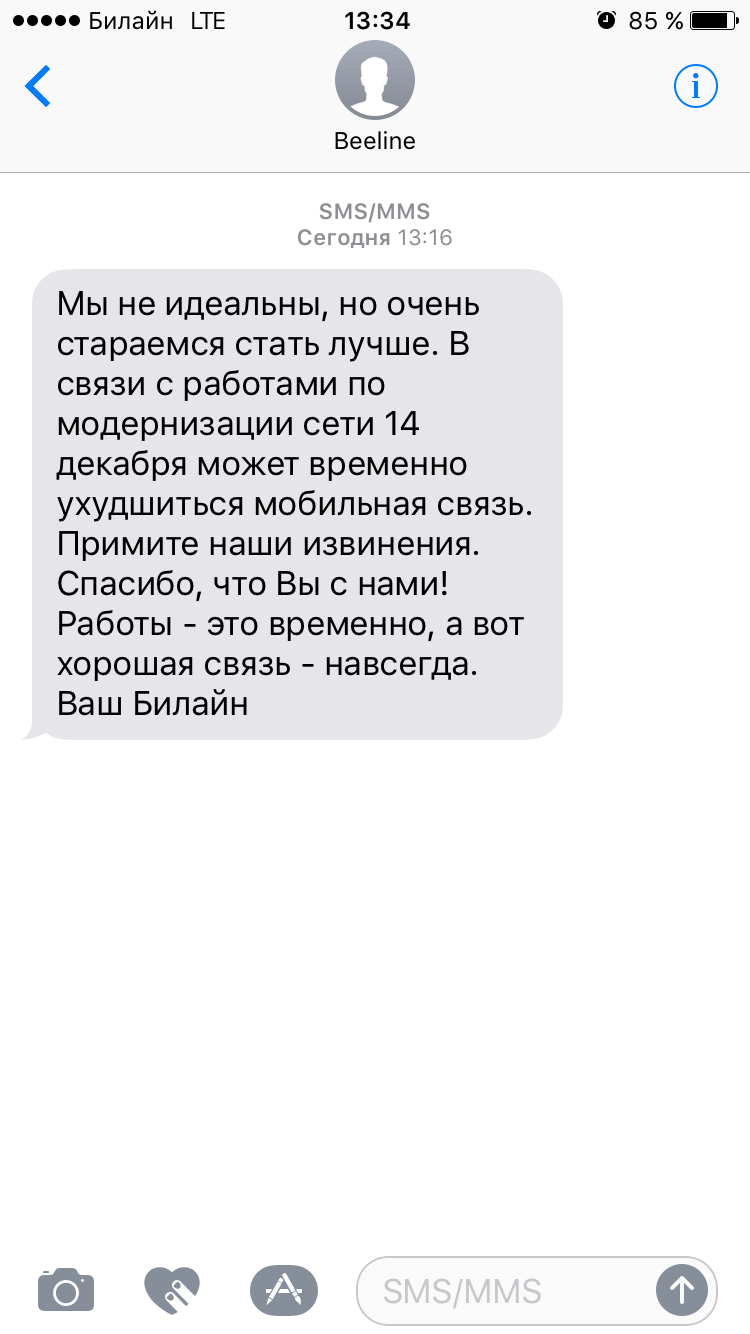 А... Ну тады понятно. Где-то африканские дети голодают, поэтому если вы сегодня не покушали, то знайте, что есть тот, кому хуже вас. Хотя сравниваете несравниваемое. Аварийная ситуация у билайна, и игрища с профилями много качающих абонентов, у йоты.