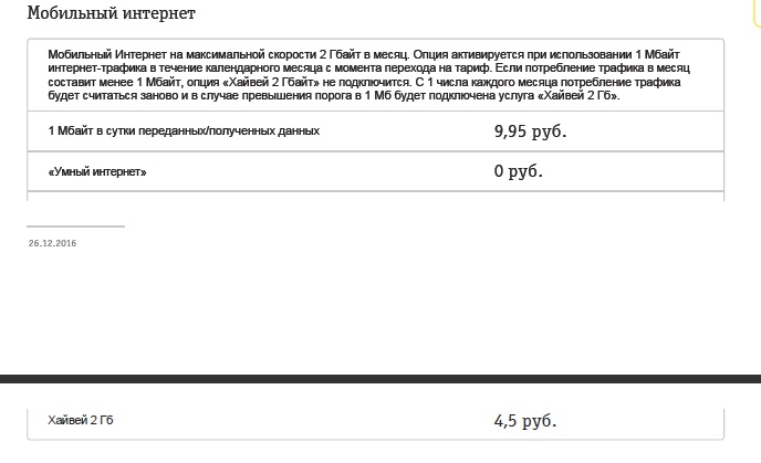 027 У билайна вообще много странного))) На архивном тарифе ноль сомнений Хайвей 2 Гб стоит 4,5 руб/день, а снимают по 5 ))) И если при разговоре с оператором техподдержки на них аргументированно наехать, то разницу вернут, но услугу отключат. С июля по декабрь - 75 ру натикало))) И биллинг тоже достаточно странно считает.