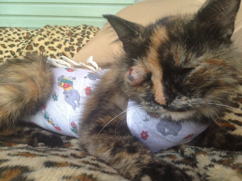 Ура! :-) Спасибо людям! ) Вчера Sierra и девушка Аня из контакта ( с которой мы Рыжика с пулей поймали) нашли-таки кошку и отвезли ее в ветклинику. Доктор осмотрел кошку и вынес вердикт, что опухоль образовалась из-за травмы глаза. Если ее срезать, то только вместе с веком, что совсем не вариант. Если частично, то она может распространиться на другие ткани. Помимо опухоли, у кошки оказалась большая рана на ноге и потухшая беременность с остатками плода или последа. Доктор отложил все свои дела и вне очереди занялся кошкой- простерилизовал ее и обработал рану. Теперь Анфиса в Гумраке, на передержке, будет восстанавливаться после всего. Дней через 10 мы ее свозим , снова покажем опухоль и решим, что же с ней делать. Если кто-то хочет помочь Анфисе, то прилагаю реквизиты: голодный Мегафон +7 929 785 65 29 карта Сбербанка 4276110011318041 РАСХОД : 1500 - операция 235 - такси в гумрак 500 - аванс за 7 дней передержки ИТОГО: 2235 рублей.