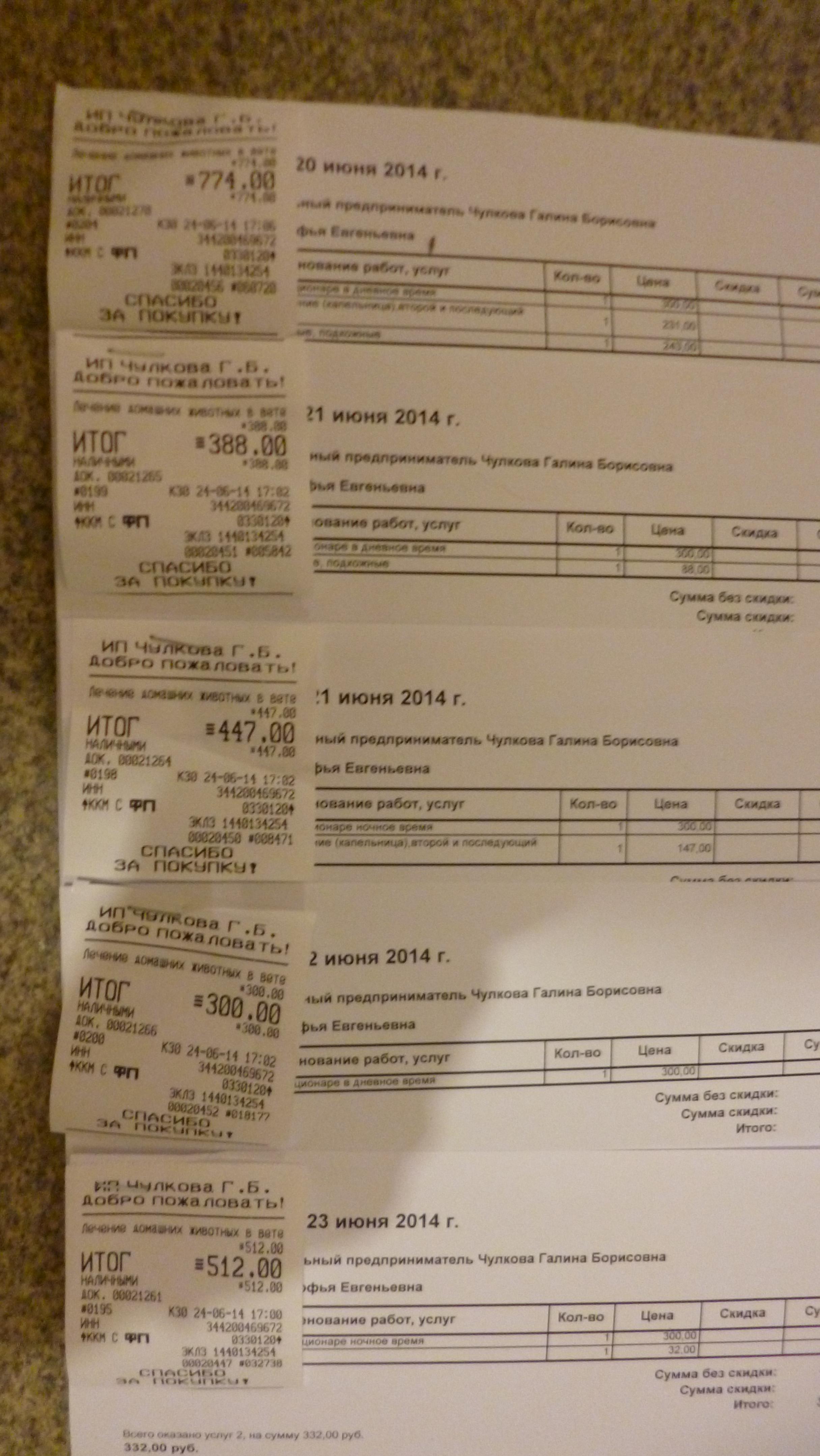 Отчет по поступлениям : Приход Дата Сумма ФИО 11.06.14 3000 Дымка - Наличными 18.06.14 600 egoistka - Карта СБ 19.06.14 500 Т.К. ( отписались в личке форума) Карта СБ 19.06.14 200 Светлана Маслова Мегафон 20.06.14 270,03 S.( отписались в личке форума) - Мегафон 21.06.14 100 Анастасия Финогенова -Мегафон 22.06.14 1000 Дмитрий ( пока не отписался ни вконтакте, ни на форуме ) - Карта СБ 24.06.14 500 Ольга Lolga - наличными Итого: 6170.03 Расходы: 12465,90 Долг-6295,87 Завтра Рыжего выписывают и мы его повезем на передержку. Сегодня Рыжий не так радостно меня встречал. Сидел на одном месте, грустный, поникший. Может, он уже "устал" от лекарств и организму надо отдохнуть. Завтра приезжает девушка , которая возьмет его на передержку, и он, наконец, будет в спокойствии.