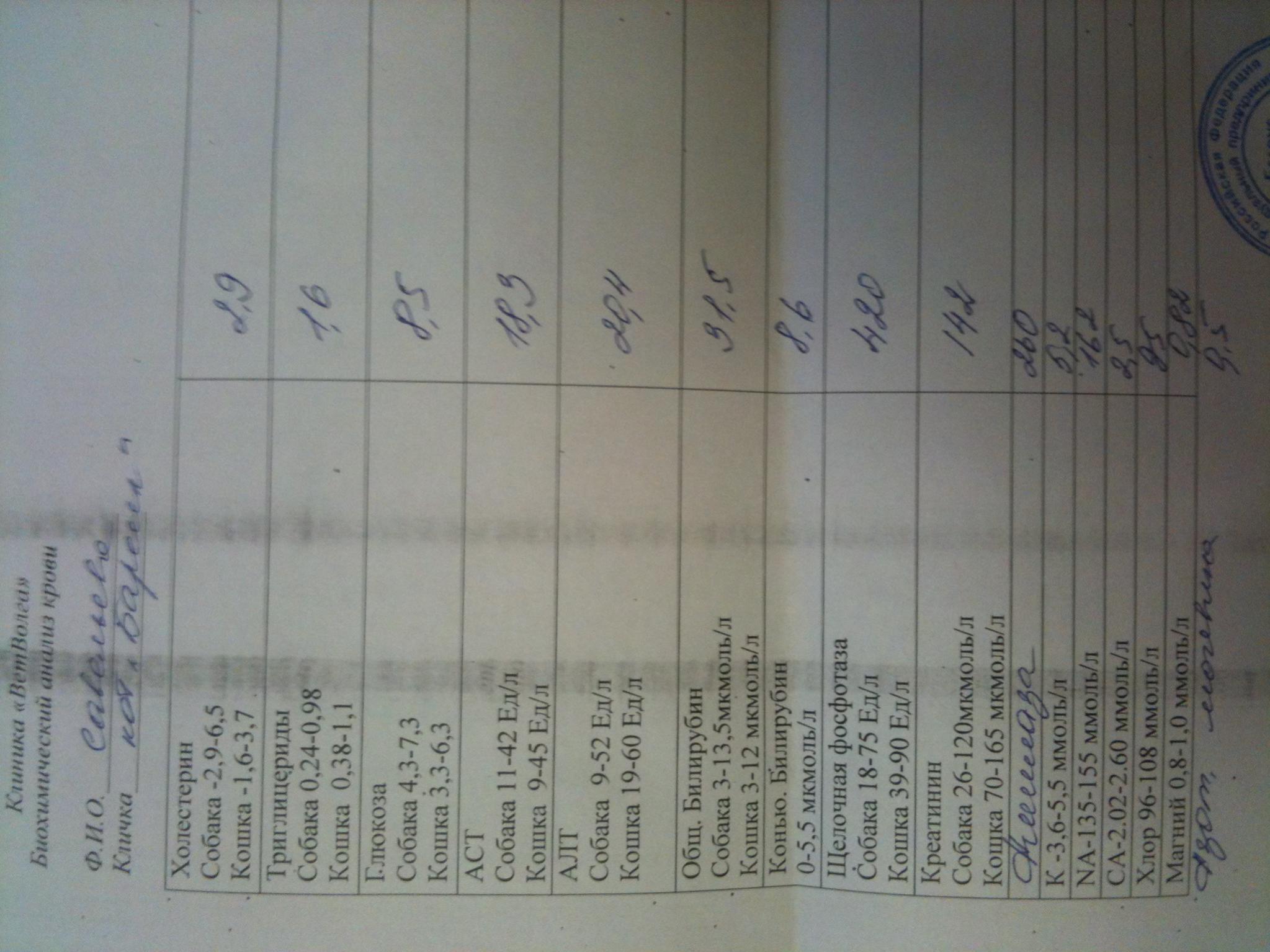 Собственно была тут от меня тема про питание кота, вот ее продолжение. Кот несколько дней не ел и стал плохим, отвели в ветеринарку и там сделали анализы, поставили какие-то уколы-капельницы (я не знаю какие точно, могу узнать). Результаты в приложении. Кормили самым дешевой сушкой с прошлой зимы (раньше я покупал проплан сушку, пока жил в влг) + домашней едой "баловали" и всякими пакетиками вискаса. Сейчас врач говорит - испортили кота сушкой, надо было кормить обычной домашкой и все было бы нормуль. Диагноз от этого врача - не факт что выживет