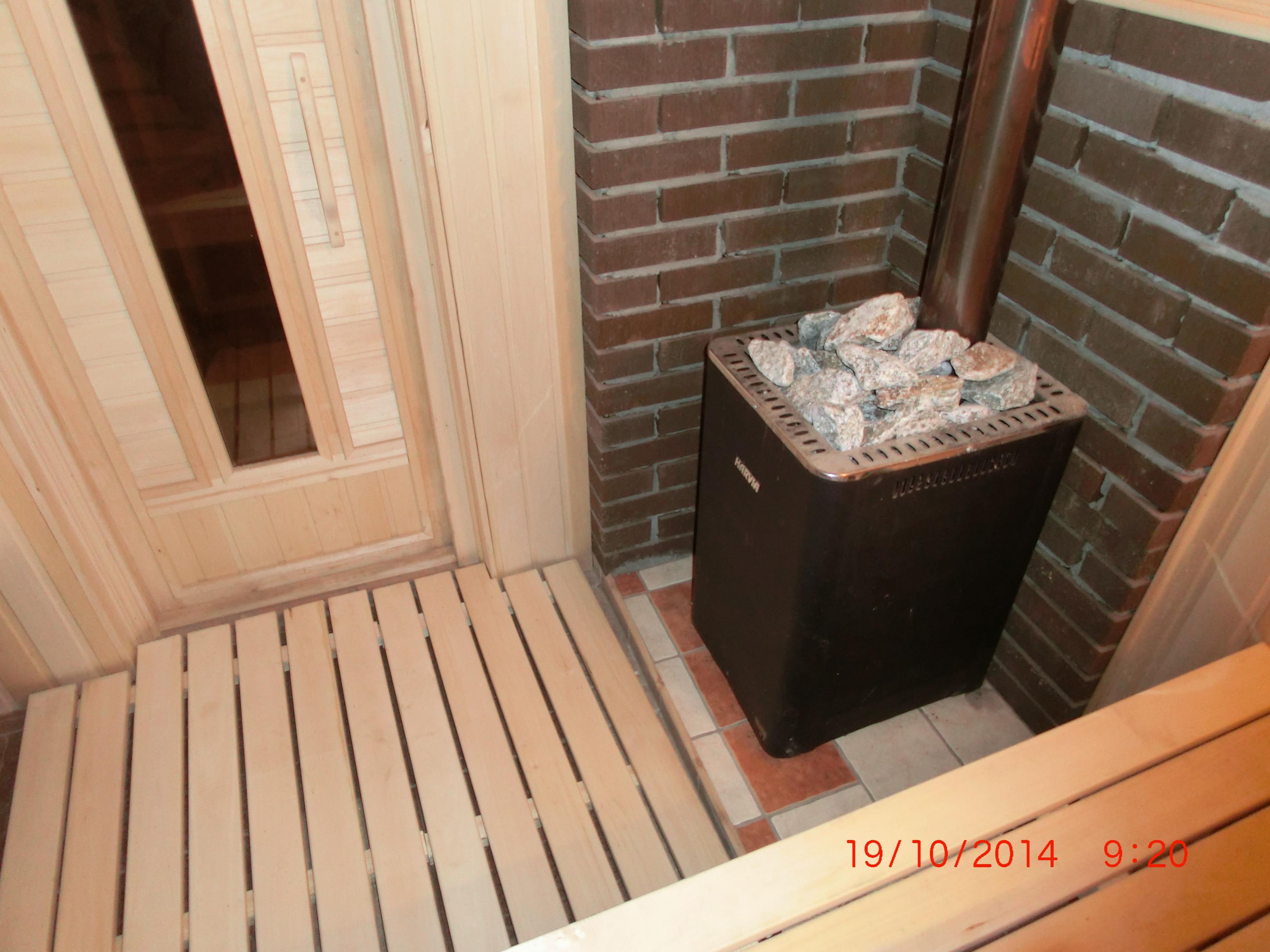 Dimanuga, Честно говоря я не стремился добиться сауны или русской бани. Как я понимаю - русская баня влажная, сауна - сухая. А на камни лить воду пожалуйста. Вот и влажность появится. На фото в печке 30кг камней