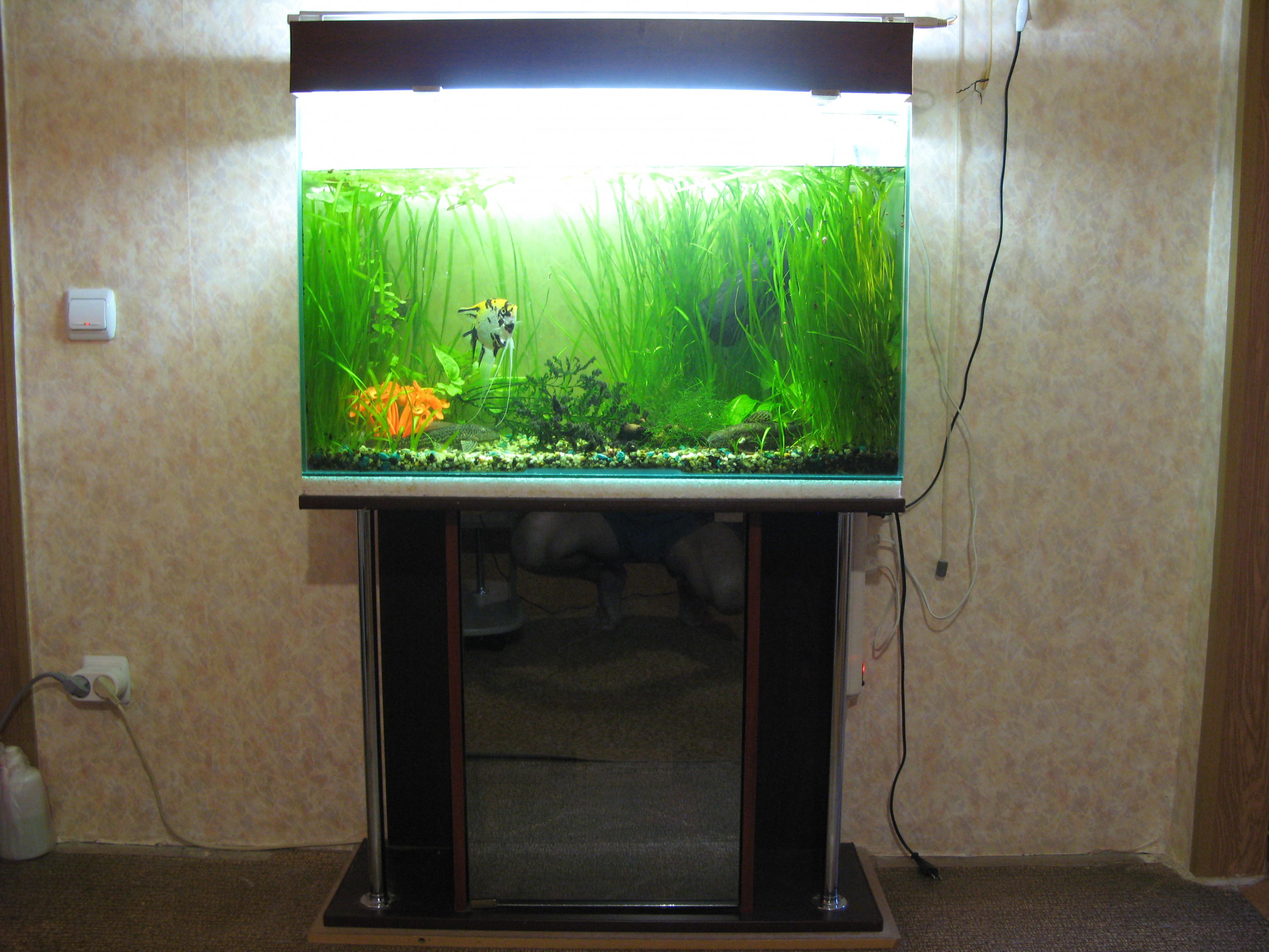 В лс ответил. ------------------------------------ За 1 тыщу руб продам и сам аквас вместе с тумбой и крышкой, фильтром и нагревателем, всему чуть более 3-лет. Синяя подсветка ночная не работает, блок питание от подсветки не в комплекте (ставился мной сомостоятельно), у фильтра присоски крепление пришли в негодность, фильтр висит на проводе (присоски придётся покупать вам). 1 и 2 фото это первые недели жизни аквы (там виден фильтр и нагреватель), 3 фото только-что сделанное.