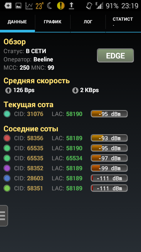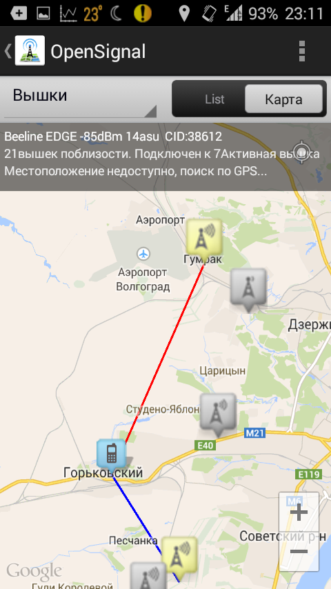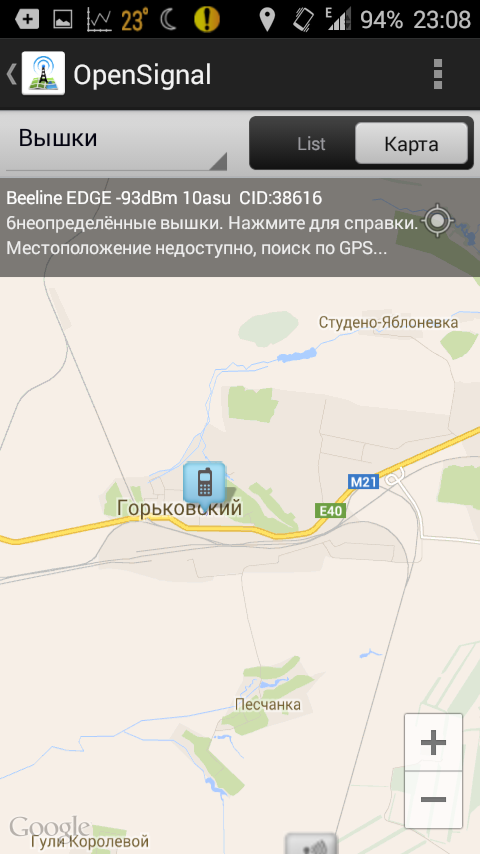 Вот результат.... Я понимаю, что произведенные непонятно каким оборудованием и софтом измерения ничего не значат, но иллюстрировать-то надо чем-то, я ж не Псаки))) Обращаю внимание, что: - телефон цепляется за далеко расположенные вышки. Почему не юзает ближние?Это ведь не телефона бзик, а специфика настройки передающего оборудования - UMTS отсутствует почти. Вот в одном углу квартиры ловится, и все. Я скорость интернета и не замеряла, потому что это бессмысленно, нет UMTS Данные о месторасположении многострадального телефона вместе с владелицей улетят сейчас в личку Билайн Для инетересующихся - это поселок Горьковский, ул Волгоградская.