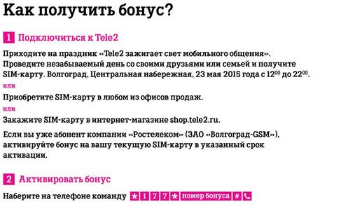 вот что-то не нашел такого "Каждый, кто проголосует за низкие цены на мобильную связь до 22 мая 2015 года, получит сертификат для льготного подключения к Tele2 и получения бонуса в размере 500 рублей. В течение десяти месяцев с июня 2015 по март 2016 года на счет абонента ежемесячно будут поступать 50 рублей." и на сайте после голосования есть только кнопка "Хочу бонус при подключении" с авторизацией только от лица соцсетей (которыми не все пользуются)