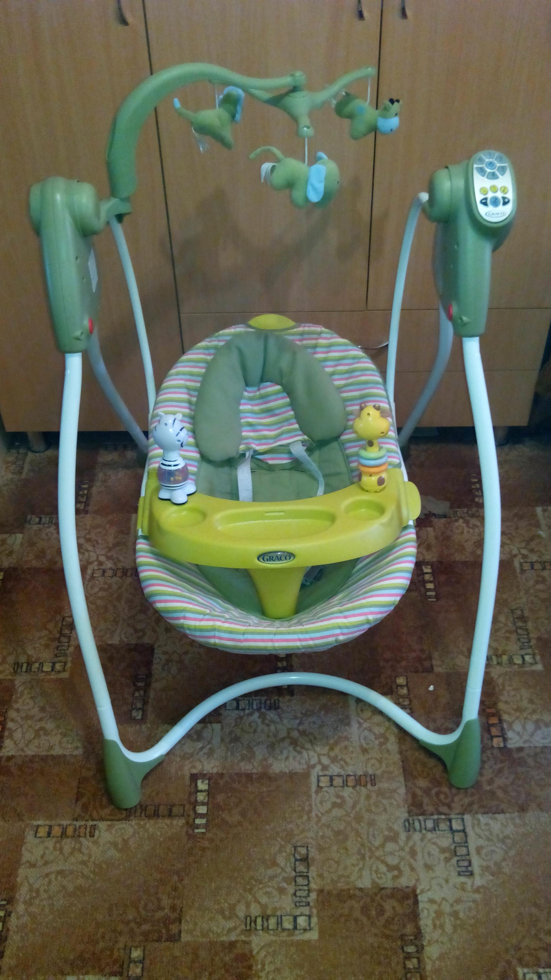 Электронные качели Graco Lovin Hug цвет Venus, до 13кг. Качели исправные, чистые. Присутствует столик с игрушками и вертушка с игрушками. Мягкое сиденье, можно стирать. Ремни безопасности. Цена 3000 рублей. Советский район. Телефон 8 927-5О5-49-42