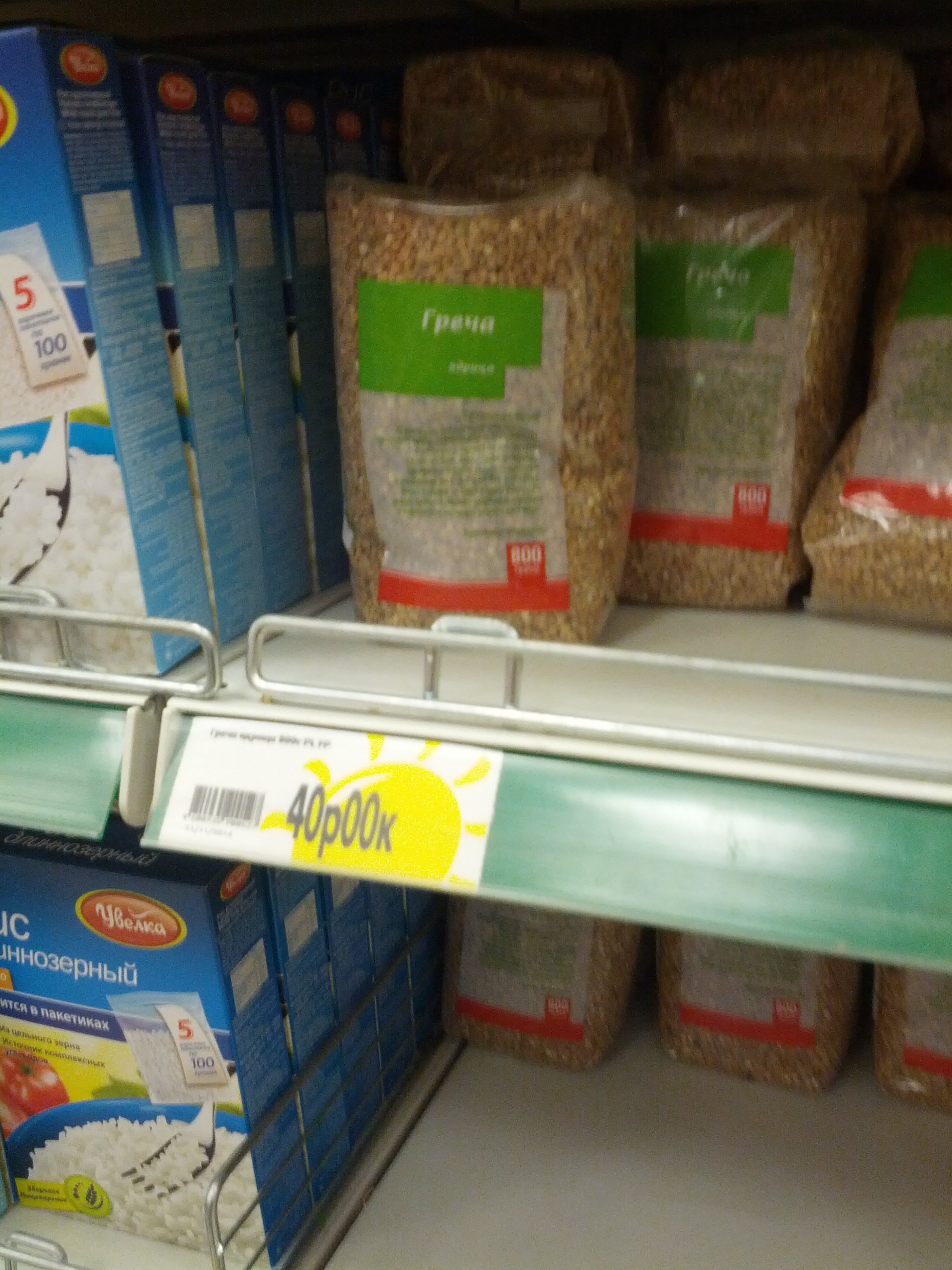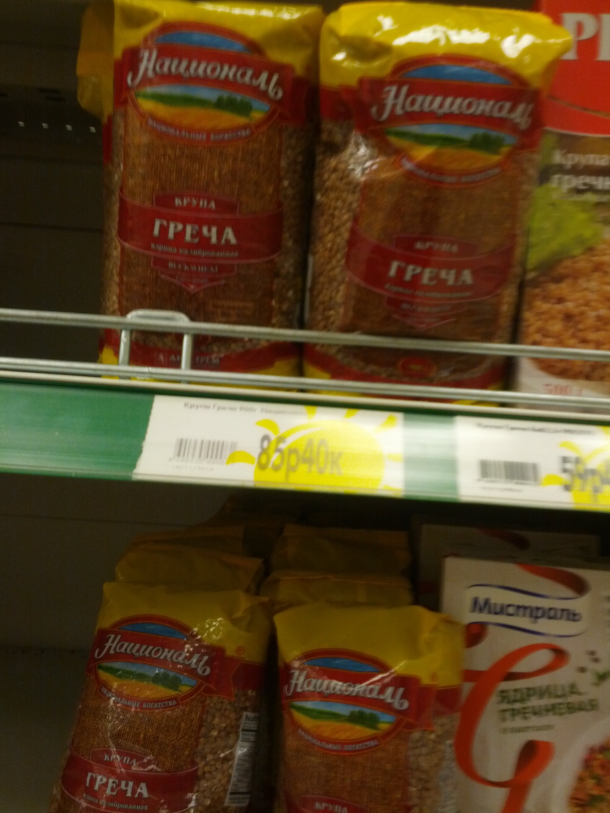 Ну фиг знает. У нас смотрел опять сегодня - лежит только дорогое за 59 руб, как и гречка по 89 руб. только.