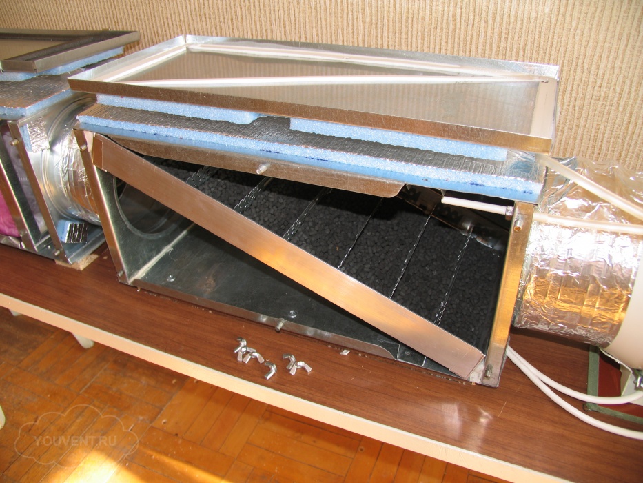 На фото не мой проект, я делаю аналогичный но с добавлением ультрофиолета и микроконтроллера. Там на входе стоит фильтр кассетный (там лист синтепона) потом угольный самодельный, и карманный тканевый, влаги там не будет следовательно и бактериям негде размножаться фильтры меняются самостоятельно. стоят недорого. Вот источник откуда черпаю вдохновение. https://youvent.ru/page-al-myvent1.html https://youvent.ru/page-al-myvent2.html https://youvent.ru/page-al-myvent3.html https://youvent.ru/page-al-myvent4.html https://youvent.ru/page-al-myvent5.html Основной + в том что не надо открывать окна и запускать пыль, особенно важно когда в квартире газовая колонка и вытяжка, что бы не было обратной тяги приточка включается от кухонной вытяжки и по команде с вентилятора сан узла, зимой конечно затраты на канальный подогреватель воздуха он на 2 киловата, а минусовой воздух нельзя запускать.