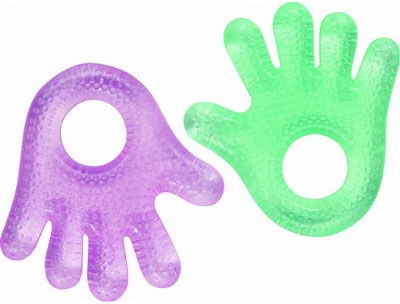 Были ещё вот такие прорезыватели, в холодильник кладутся и даются ребёнку холодными. Наш ребёнок их не грыз, ни тёплыми, ни холодными.
