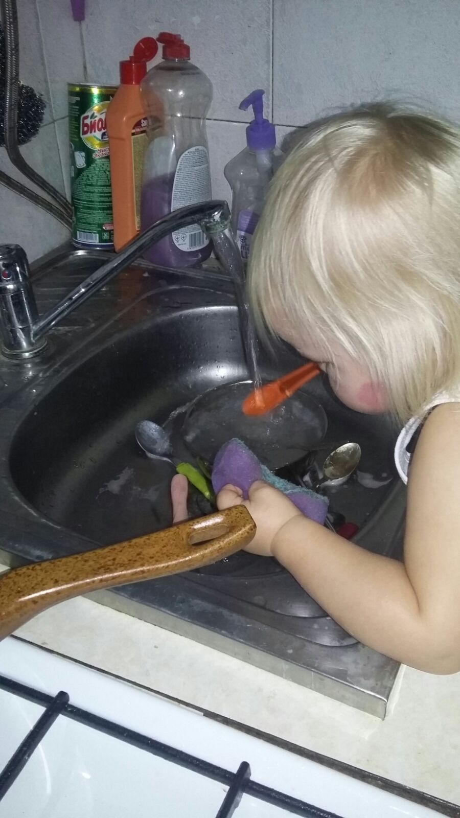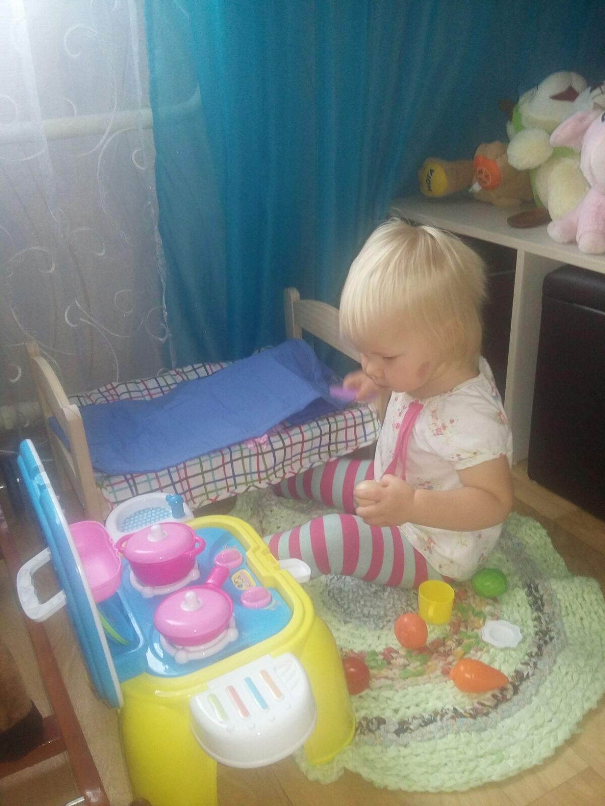 Я LLLjolja уже рассказывала в личной беседе, у нас Даша особо в игрушки не играет, покупаем по необходимости. Коляску трость купили в 1,4, кухню вот в 1,8. Даша целый день занята делами взрослыми: она кладет вещи в стиралку, досатет, развешивает, подметает, полы моет, пол протирает, по кухне и тд. Спит, ест, гуляет. На игрушки время остается только чуть утром и вечером, и это потому-что сейчас на улице дел нет Играет, но мало. Думаю подрастет когда, тогда может начнет уже сама какие игрушки просить. Сегодня вот доросла до раковины мыть посуду)