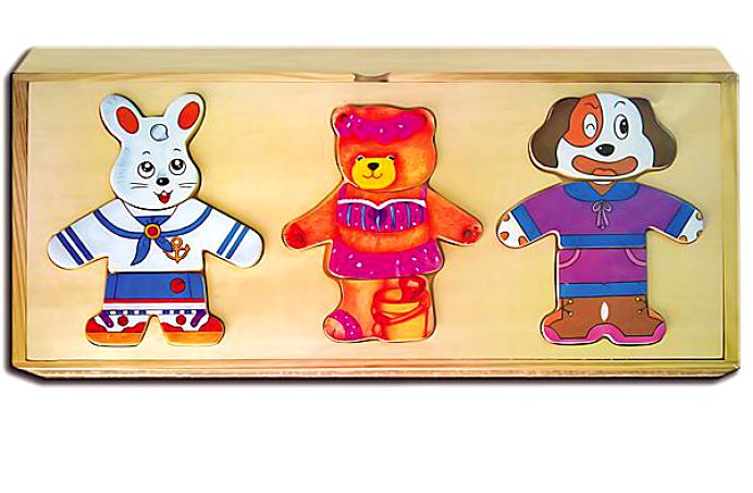 Вот такие (фото 1, разные животные) я пазлы покупаю Даше. А так их полно разных всяких. Есть еще набор заяц_собака_медведь. Отдельно мордочка (с разной мимикой лица каждого, отдельно руки и ноги с разными вариантами одежды). В коробке запчасти все, а на крышке выемки для трех зверей куда и надо собирать их.