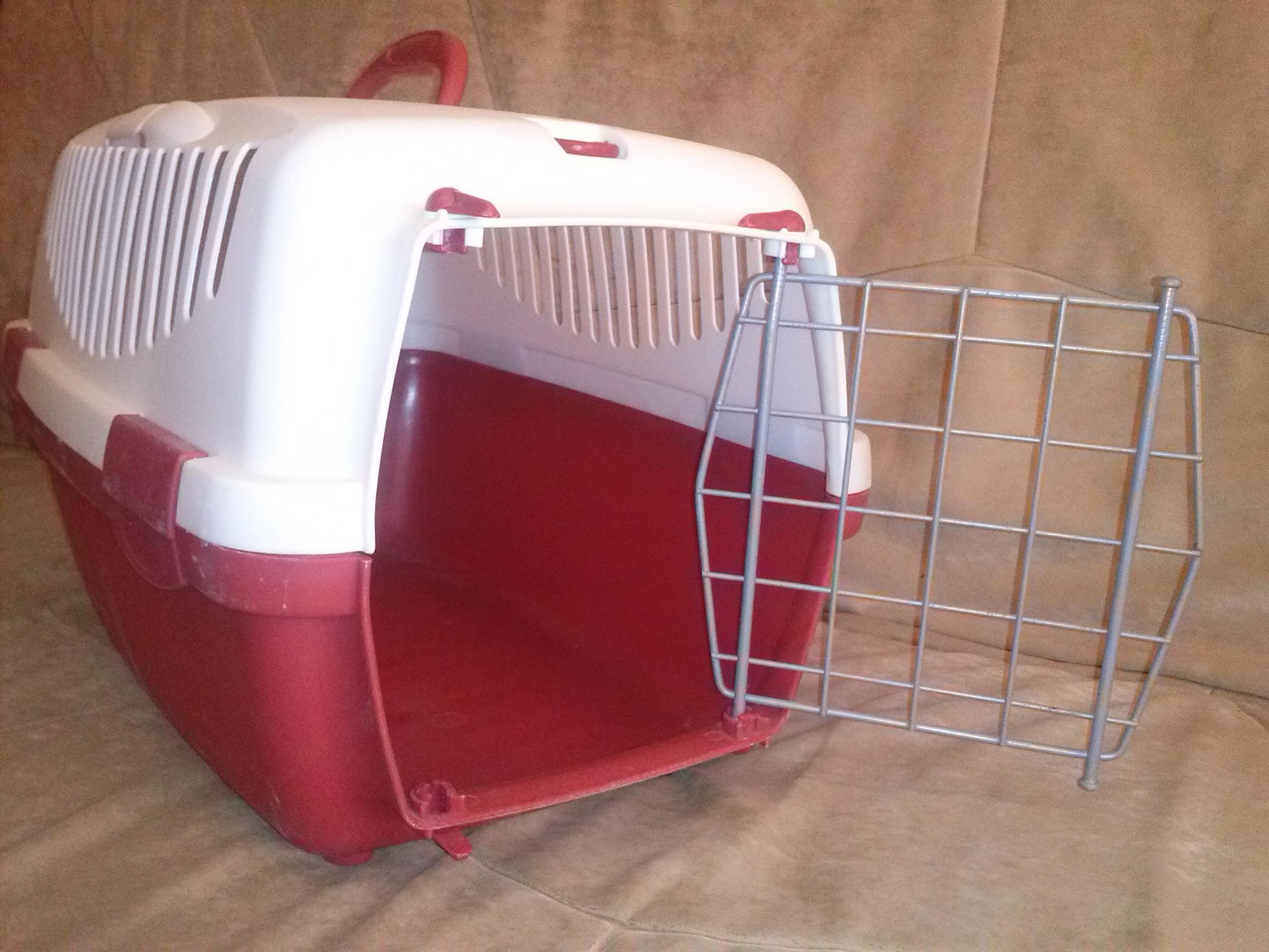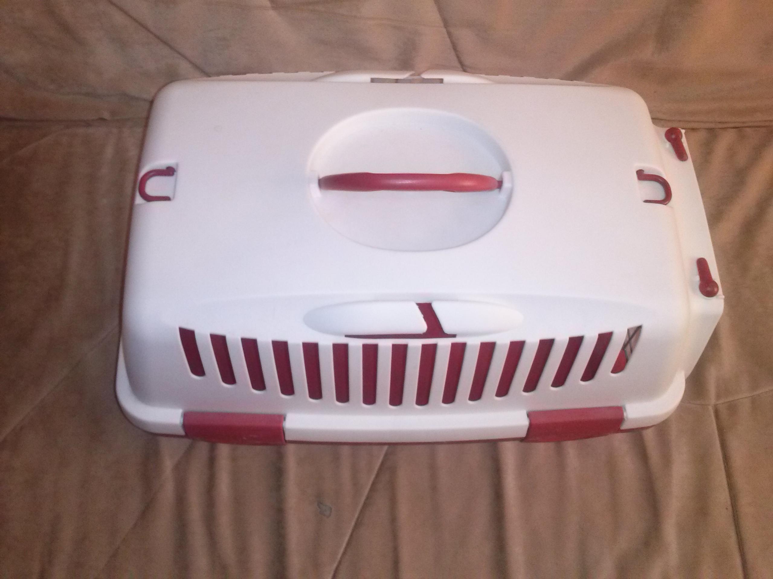 Новый.Красно белый, пластиковый. Дверца-решётка открывается. Кейс разборный для мытья и чистки.Возможен монтаж колёсиков. Есть крепёж под ремень безопасности, для перевозки в автомобиле. Хорошо подходит для кошек и небольших собак. 800 рублей. Если есть желание купить стучите лучше в личку, за темой не слежу.