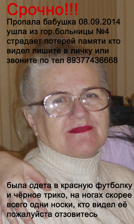 Спасибо добрым людям. Сегодня утром позвонила девушка и бабушка нашлась