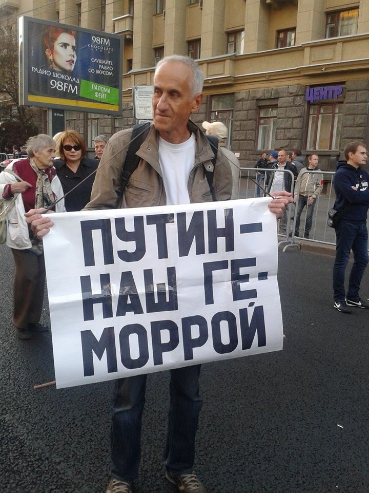 даешь в Киеве марш за мир на Донбассе! С флагами Украины и Новоросии! Плакатами "Порошенко, руки прочь от Донбасса!" и "Яценюк - наш геморрой!"