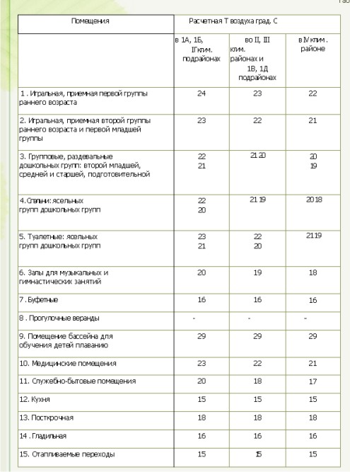 1. по теплу в помещениях сада нормы одни, странно что у Вас они разные (см.рис.) и там я 14 не вижу 2. нормы на то и есть нормы, что рассчитаны для большинства и требуют соблюдения, ибо мой киндер ходит не в частный детсад на квартире, а в общеобразовательное учреждение, в котором я рассчитывают отдать и забрать ребенка здоровым, ибо при выборе сада в основу закладываю НОРМЫ - тепла, питания, обучения, площади, безопасности и т.д.