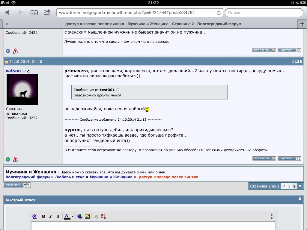 primavera, рис с овощами, картошечка, котлет домашний...2 часа у плиты, постирал, посуду помыл... щас можно пивасом расслабиться)) не задерживайся, пока сення добрый ---------- Сообщение добавлено 24.10.2014 21:12 ---------- пурген, ты в натуре *****, иль прикидываешься? а нет...ты просто тяфкаешь везде, где больше профита... оппортунист гендерный епта))
