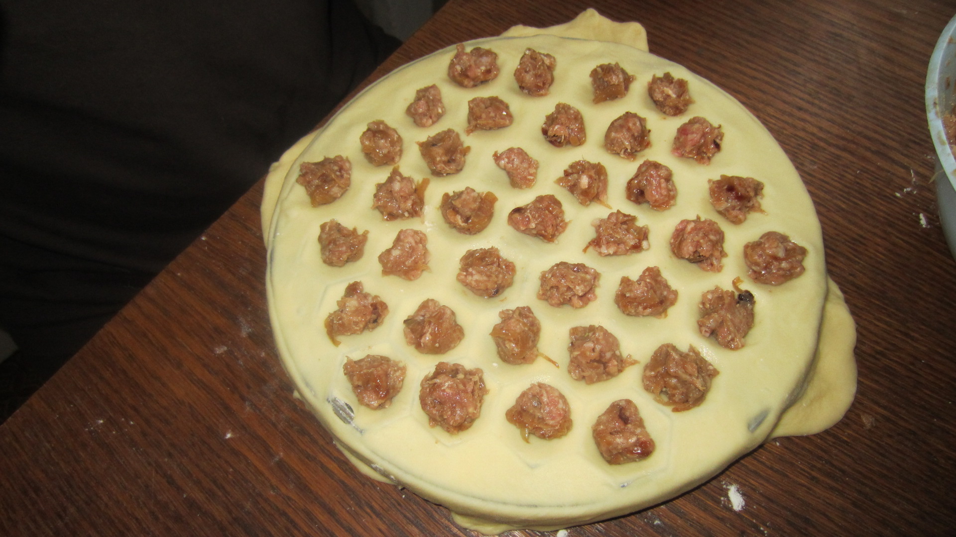 В очередной раз восхищаюсь преклоняюсь и ... ---------- Сообщение добавлено 03.11.2014 16:38 ---------- Тесто на пельмени делаю просто, мука вода соль яйцо. тесто крутое насколько можно. Так как делаю руками ни одна бытовая хлебопечка не может. А то что делает хлебопечка разваривается ( жидкое оно . Мясорубку не люблю. двумя топориками зело быстрее и мыть меньше. ---------- Сообщение добавлено 03.11.2014 16:47 ---------- а зачем? Вариантов лепки пельменей несколько. первый из листа стопкой варезаем кружки. внутрь начинку и сложив пополам защипываем, два ушка соединяем вместе получается пельмень классический. Если времени мало а пельменей надо много, тогда полоску теста выкладываем на стол, на нее укладываем фарш порциями, и накрыв горки фарша этим же листом( как бы переворачивая страницу книги),стопкой варезаем этакие полумесяцы, и фарш остается внутри, остается только слепить два хвостика. А когда совсем нет времени делаю пельменный рулет На лист теса тонким слоем кладу мясо( или любую другую начинку, я люблю сырую картошку с красным перцем и сливочным маслом и закатываю в рулет. Края защипываю чтобы все было герметично . Такой рулет на ярус мантикаскан, и через час за уши не оттащищь.