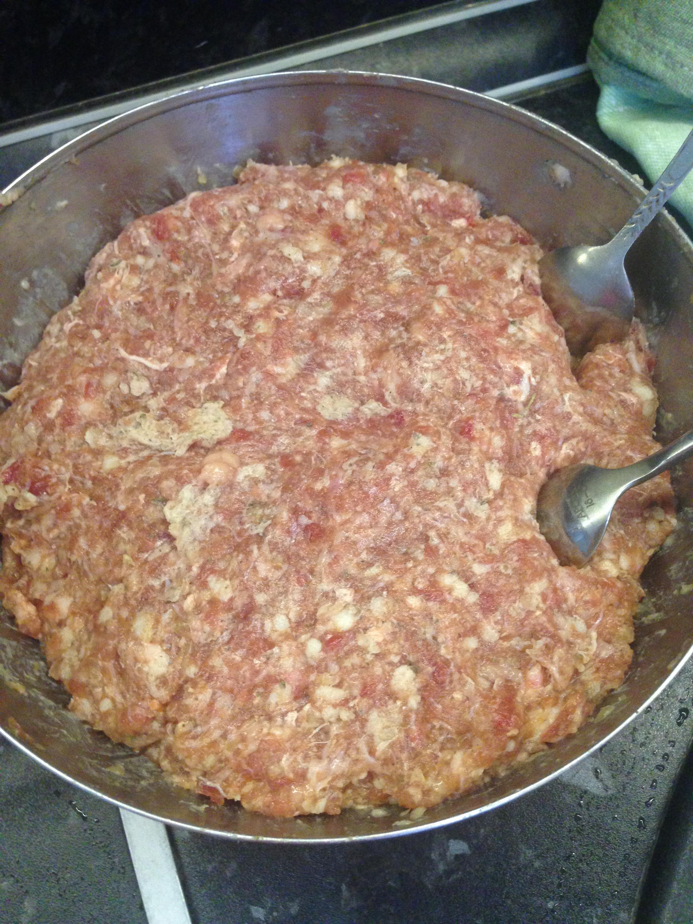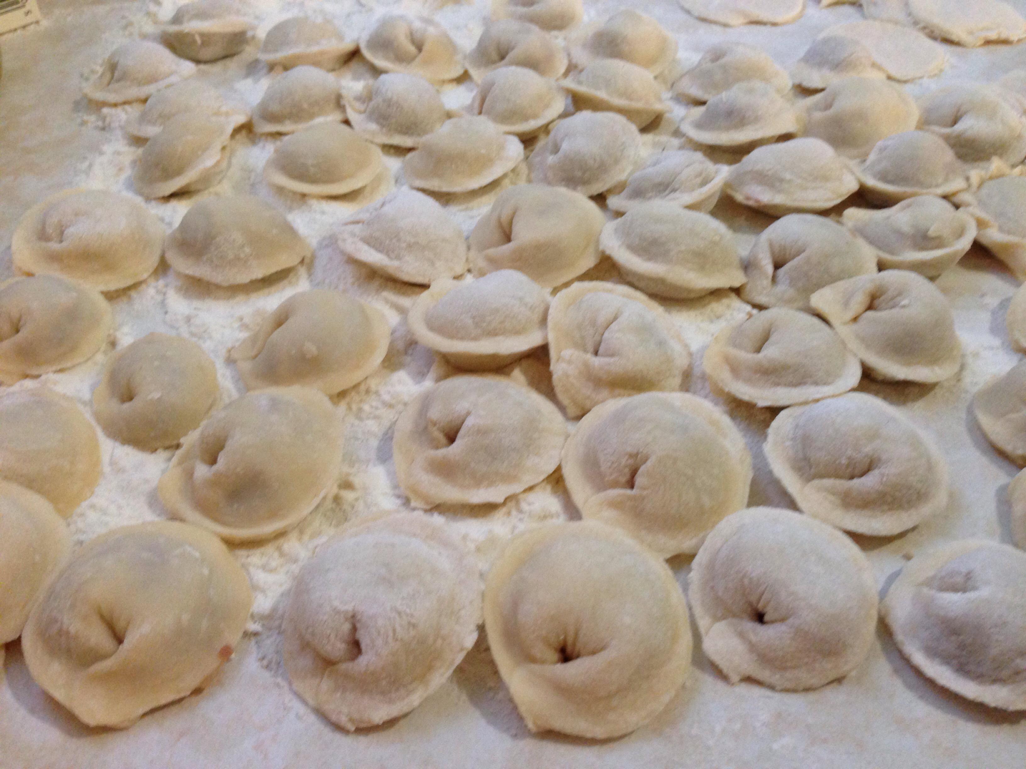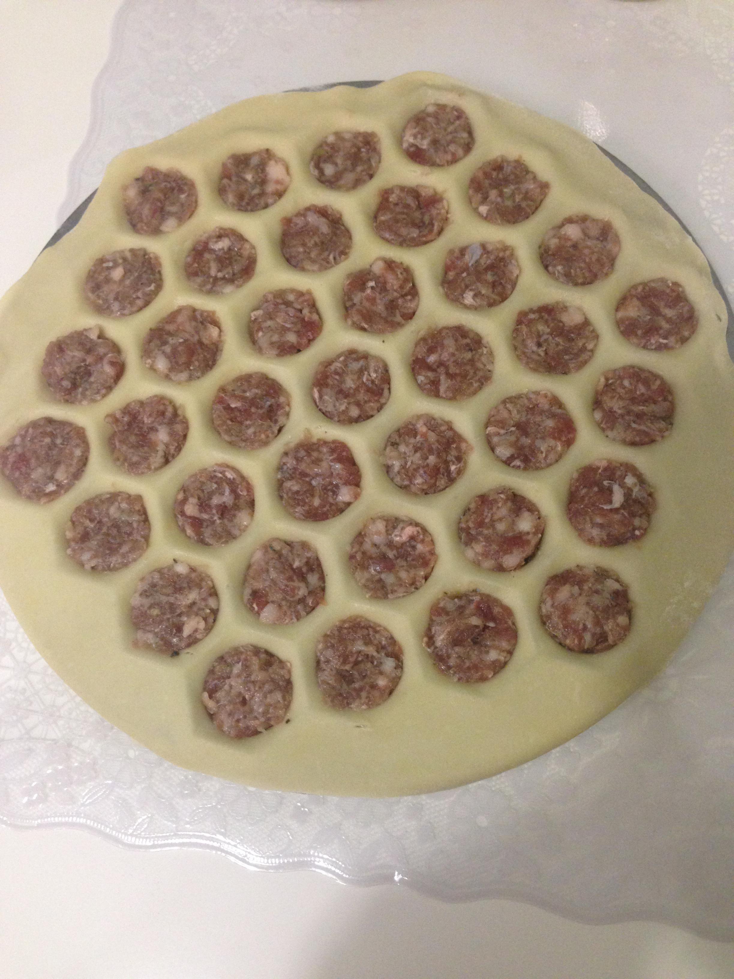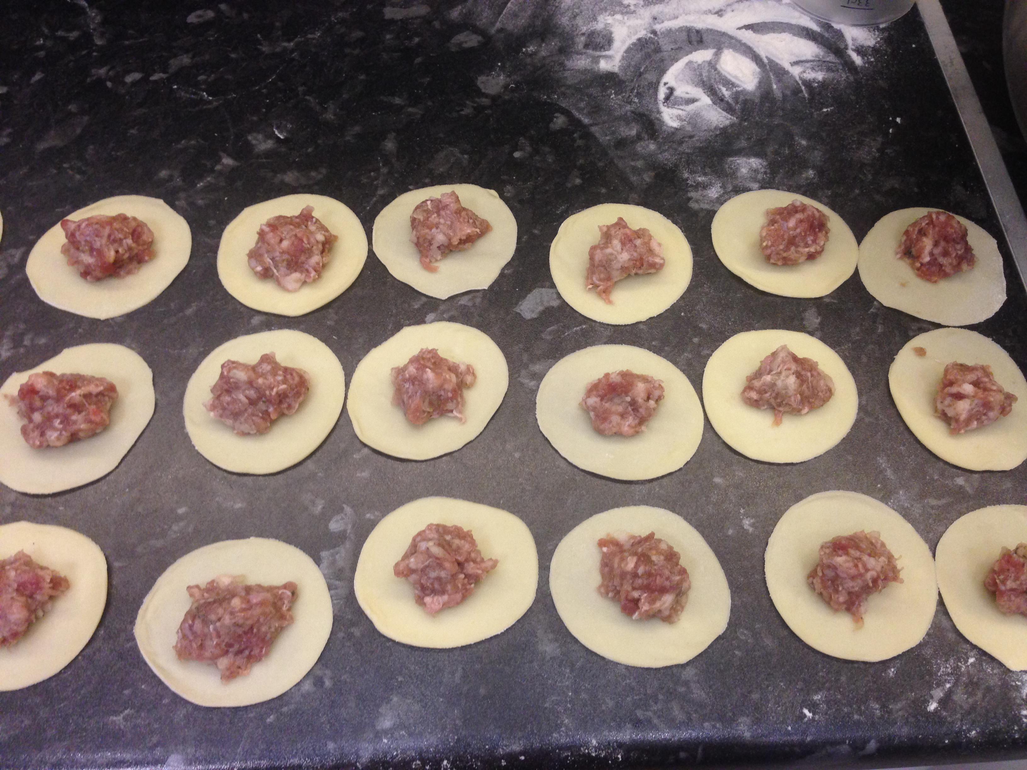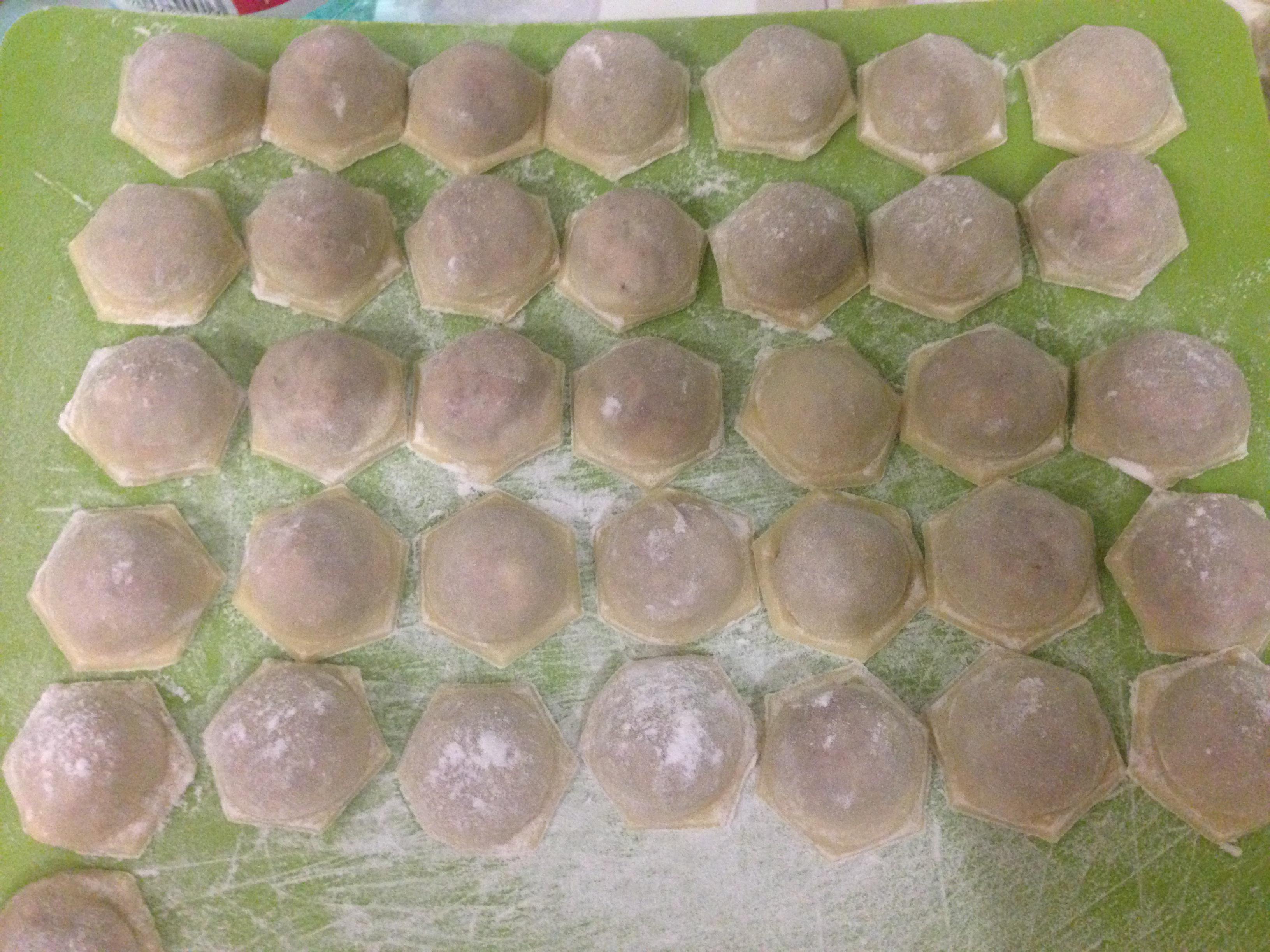 Сегодня к новогодним дням лепили. Запряг всех. Кабанятина, говядина, свиное сало, лук, сушеный базилик, чуток растертой зиры, соль. Штук двести с лишним. завтра закончим. Фарша еще столько же.