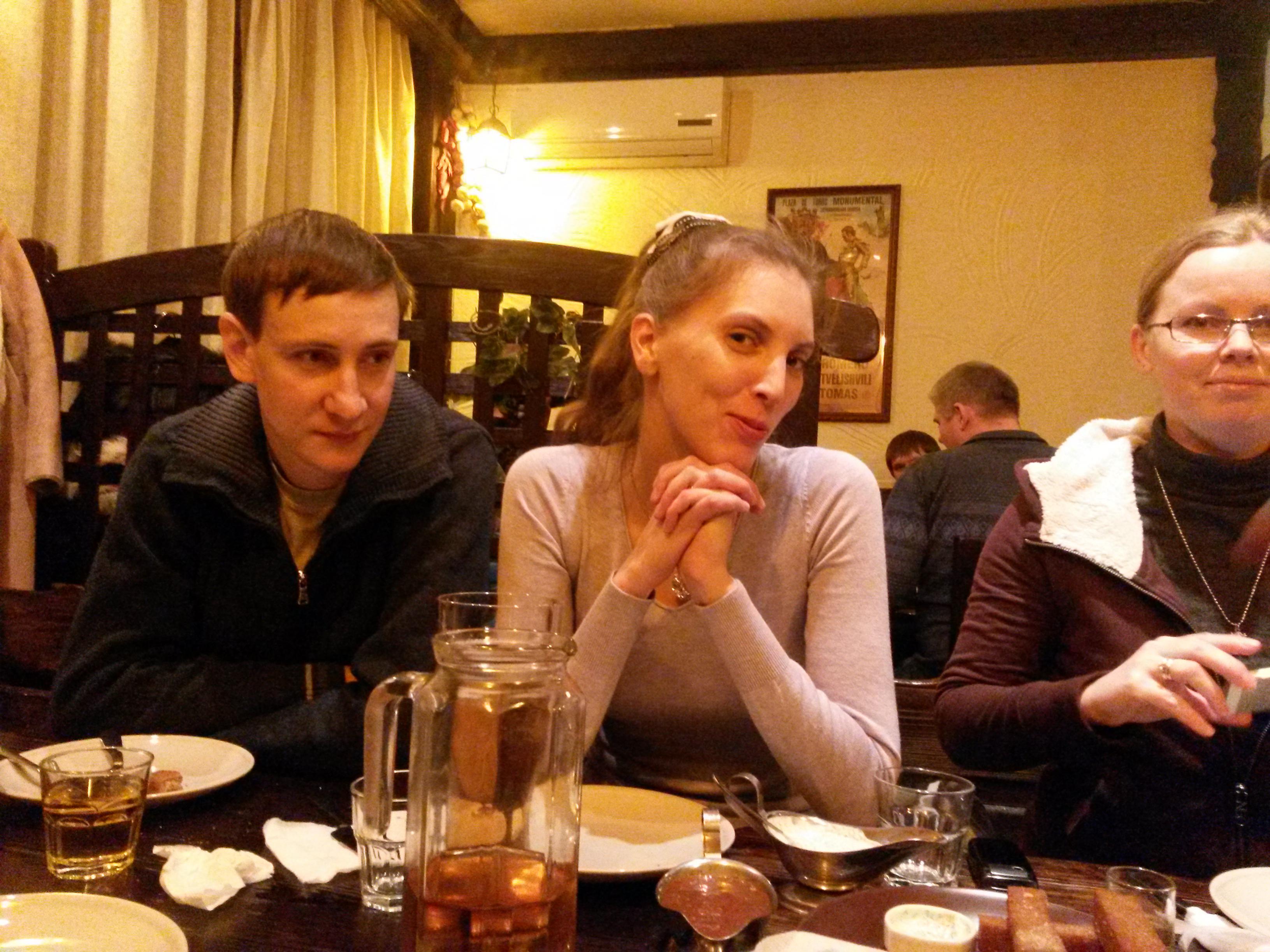 Вообщем нормально посидели, хинкалями обожрался, очень вкусные но немного островатые но это по кайфу, Столик заказывал на 10 человек ,как раз пришли 9 человек, собирались многие но пришли не все,чачи опились ,спиртное к них очень дешевое, начиная от водки и заканчивая коньяками.Официантка была очень приятная девушка, даже Маришке вроде понравилось грузинское вино... Народу было очень много все столики забиты, приятное общество девушек в нашей компании согревало душу, тока шиля свинтила таща неоская домой.