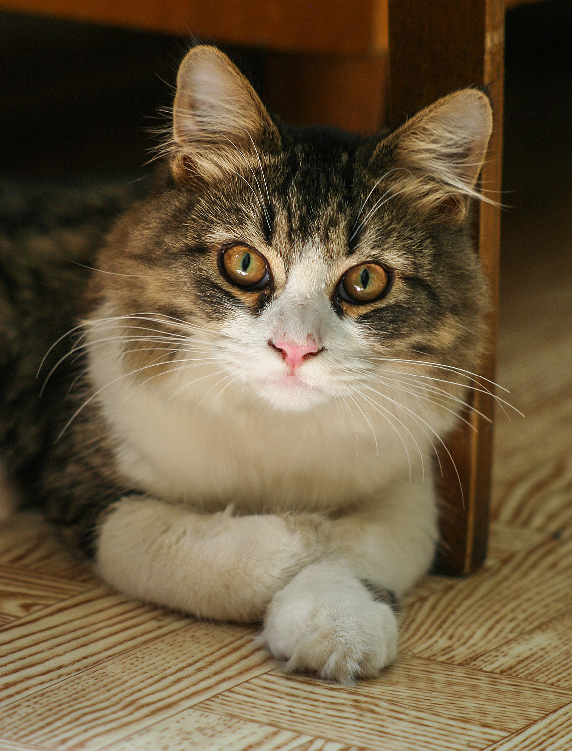А по-моему, фон хорошо размылся: в фокусе только мордочка кошки. Я снимал на самой большой (широкой) диафрагме 3,5, поэтому глубина резкости была очень маленькой и всё размывалось уже в полуметре за объектом съёмки.