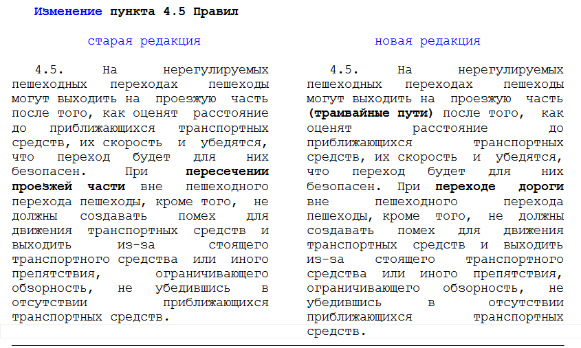 "Уступите дорогу". Можно, конечно, скорость снизить, чтобы пешеход перешёл. Но, если водители не успевают даже остановиться, то сбросить скорость тоже не получится. ---------- Сообщение добавлено 26.11.2014 15:13 ---------- Теперь правила, кстати, отлично сочетаются с требованием для пешеходов убедиться в безопасности перехода, которым любили тыкать быдло-водители. Теперь пешеход шагнул на зебру, видит машина едет быстро. Чтобы убедиться в безопасности перехода, он остановился. Вот уже водитель виноват. Пешеход, которому он должен уступить дорогу остановился из-за него. Бинго. Жаль, что всё равно мало штрафуют.