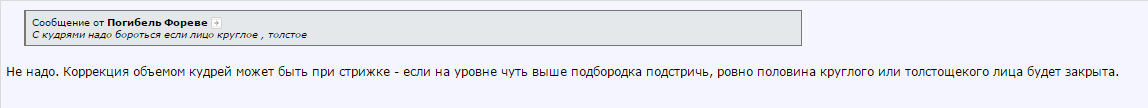 Аууу! ОМГ. Все как всегда. Тавро забыла тему спора. Тавро, суть была в том, что Вы опровергали мое утверждение что при широком лице прямые волосы смотрятся лучше по любому чем кудрявые. Вы писали что это не так.